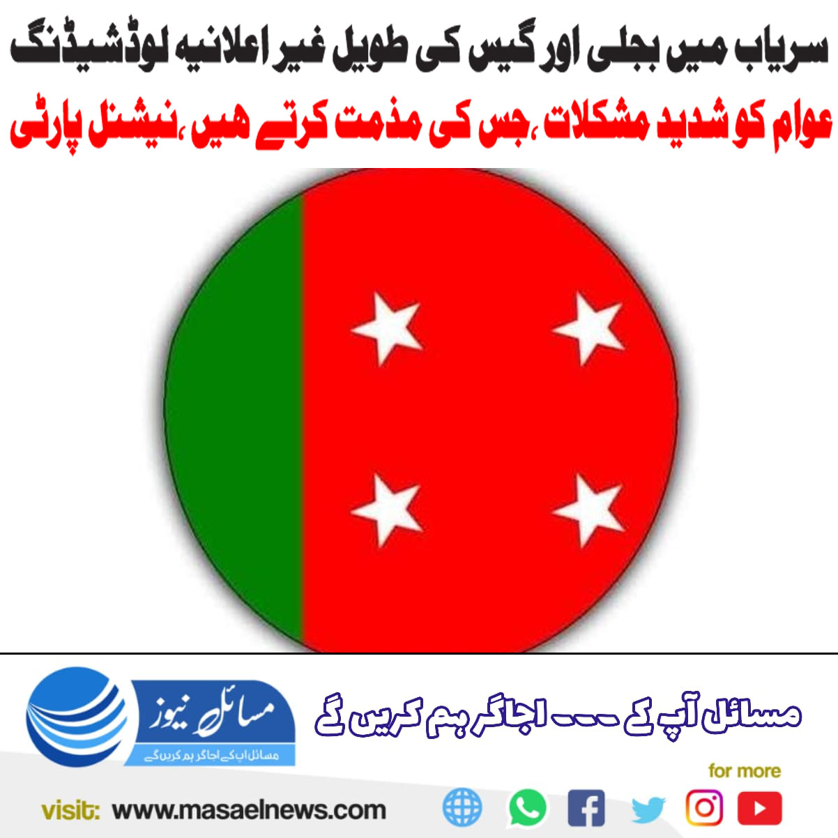 کوئٹہ سریاب میں موسم سرما کے آمد کے ساتھ ہی بجلی اور گیس کی طویل اور غیر اعلانیہ لوڈشیڈنگ اور پریشر میں کمی کی وجہ سے عوام شدید مشکلات اور ازیت میں مبتلا ہے جس کی پرزور الفاظ میں مذمت کرتے ہیں۔ نیشنل پارٹی