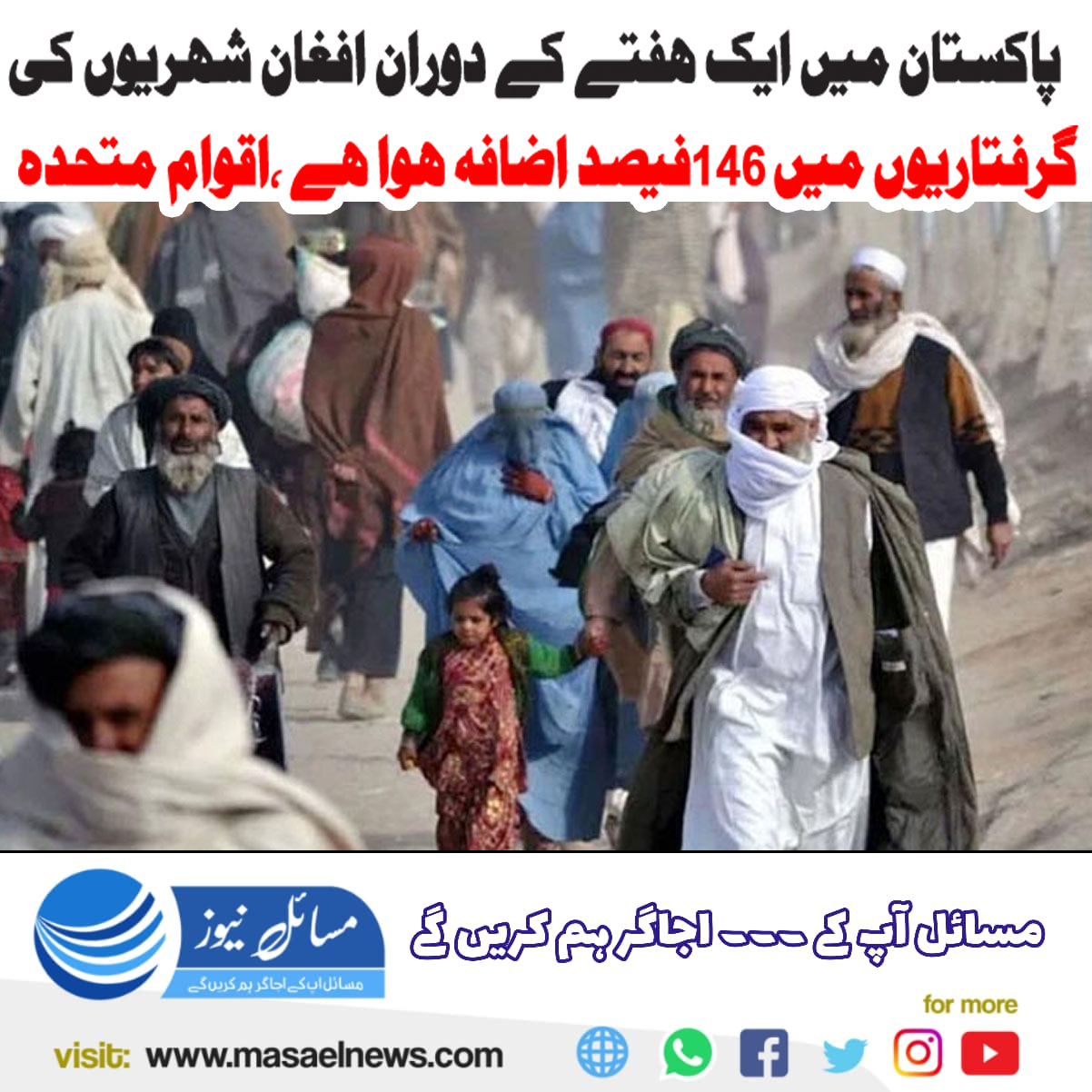 پاکستان میں ایک ہفتے کے دوران افغان شہریوں کی گرفتاریوں میں 146 فیصد اضافہ ہوا ہے‘ اقوام متحدہ
