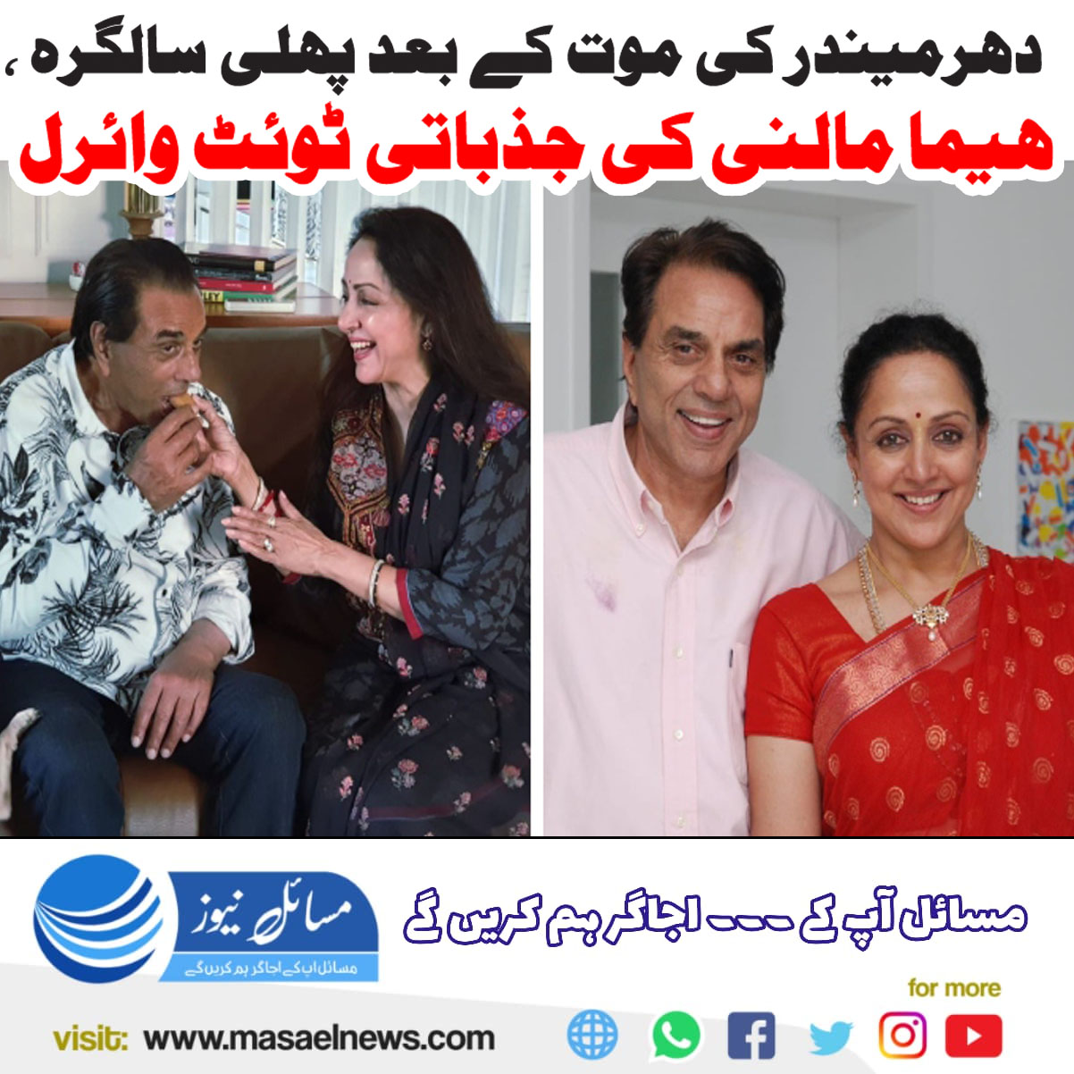 ممبئی (مسائل نیوز)بالی وڈ کی سینئر اداکارہ و سیاستدان ہیما مالنی نے شوہر کی وفات کے بعد ان کی سالگرہ کے روز جذباتی پیغام سوشل میڈیا پر شیئر کیا۔