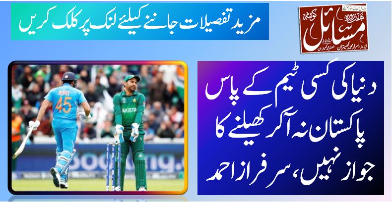 قومی کرکٹ ٹیم کے سابق کپتان اور وکٹ کیپر بلےباز سرفراز احمد کا کہنا ہے کہ دنیا کی کسی ٹیم کے پاس پاکستان آکر نہ کھیلنے کا کوئی جواز نہیں۔پاکستان سال 2017 میں چیمپئینز ٹرافی جتوانے والے کپتان سرفراز احمد نے گورنمنٹ جناح کالج میں کرکٹ گراؤنڈ کی افتتاحی تقریب کے موقع پر میڈیا سے گفتگو کرتے ہوئے کہا کہ بھارت کو پاکستان آکر کرکٹ کھیلناچاہیے، ایشین کرکٹ کونسل (اے سی سی) اور انٹرنیشنل کرکٹ کونسل (آئی سی سی) کو اس ضمن اپنا کردار ادا کرنے کی ضرورت ہے۔