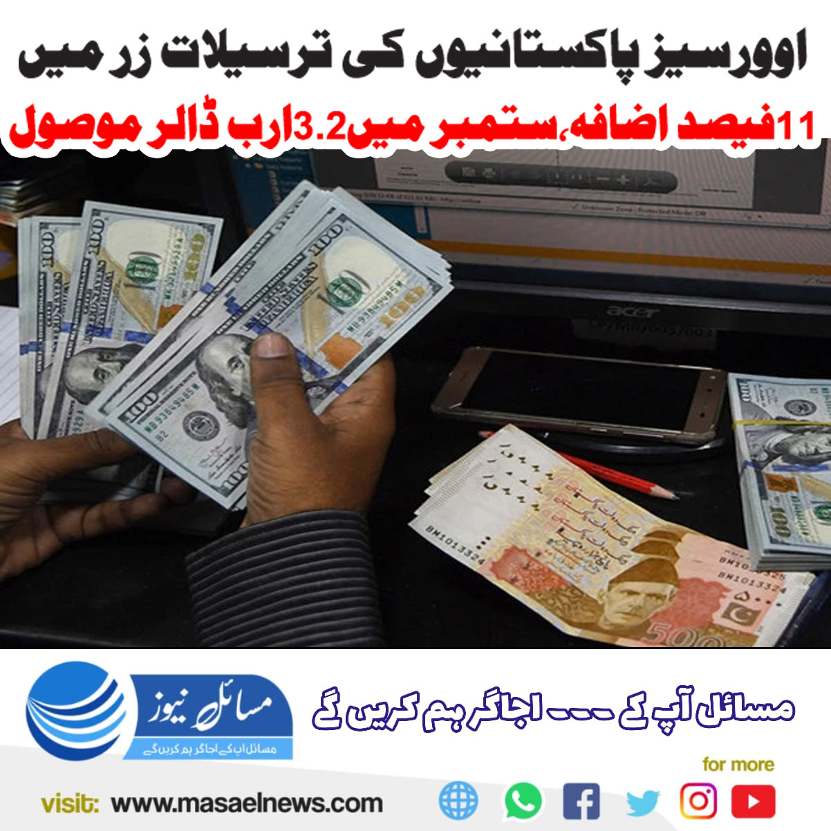 کراچی(مسائل نیوز)پاکستان کو ستمبر 2025ء کے دوران بیرون ملک کارکنوں کی ترسیلات زر کی مد میں 3.2 ارب امریکی ڈالر موصول ہوئے۔