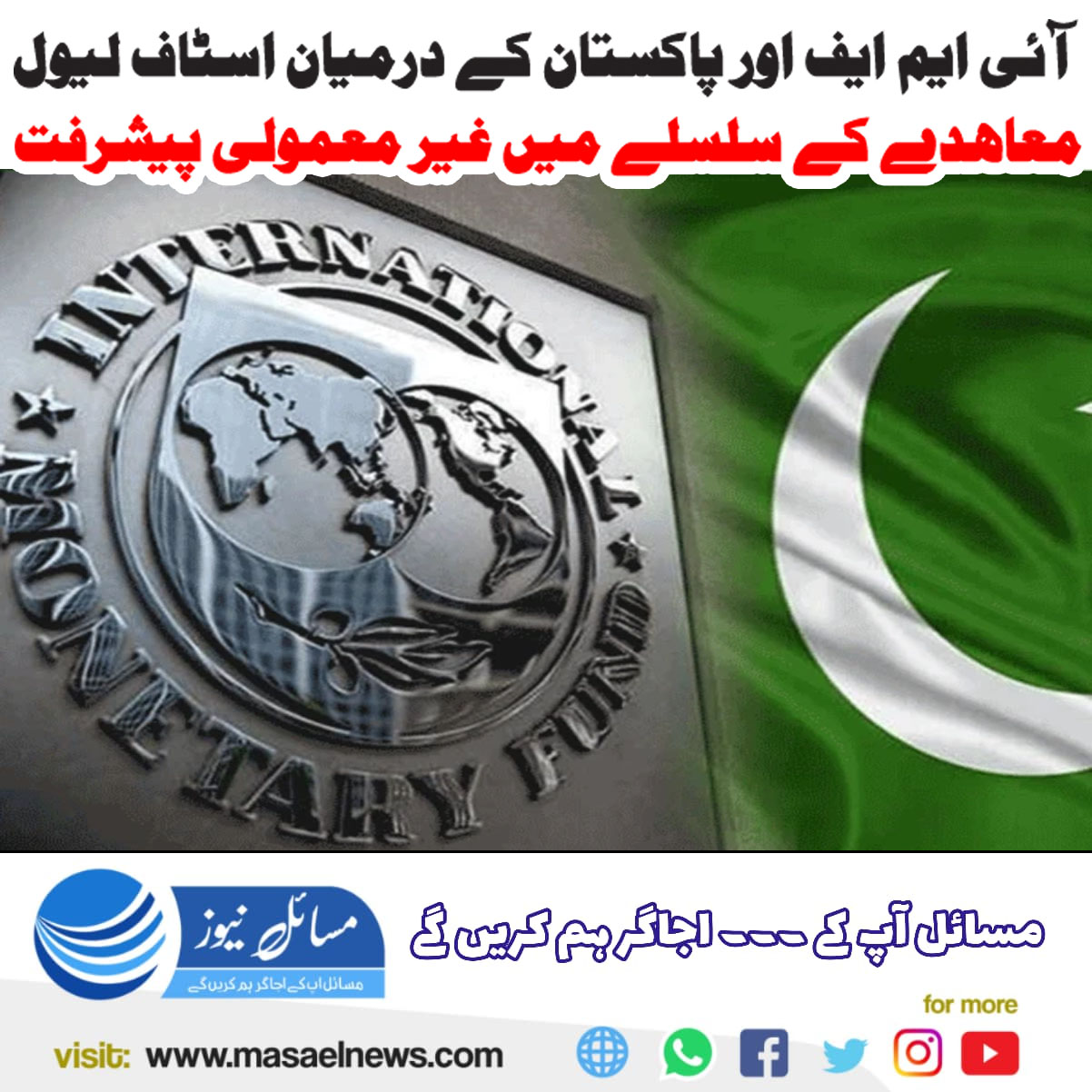 اسلام آباد(مسائل نیوز)آئی ایم ایف کا پاکستان کے ساتھ اسٹاف لیول معاہدہ نہ ہوسکا، البتہ اعلامیے میں کہا گیا ہے کہ مالیاتی فنڈ کے مشن اور پاکستانی حکام نے اسٹاف لیول معاہدے میں غیر معمولی پیشرفت کرلی ہے۔