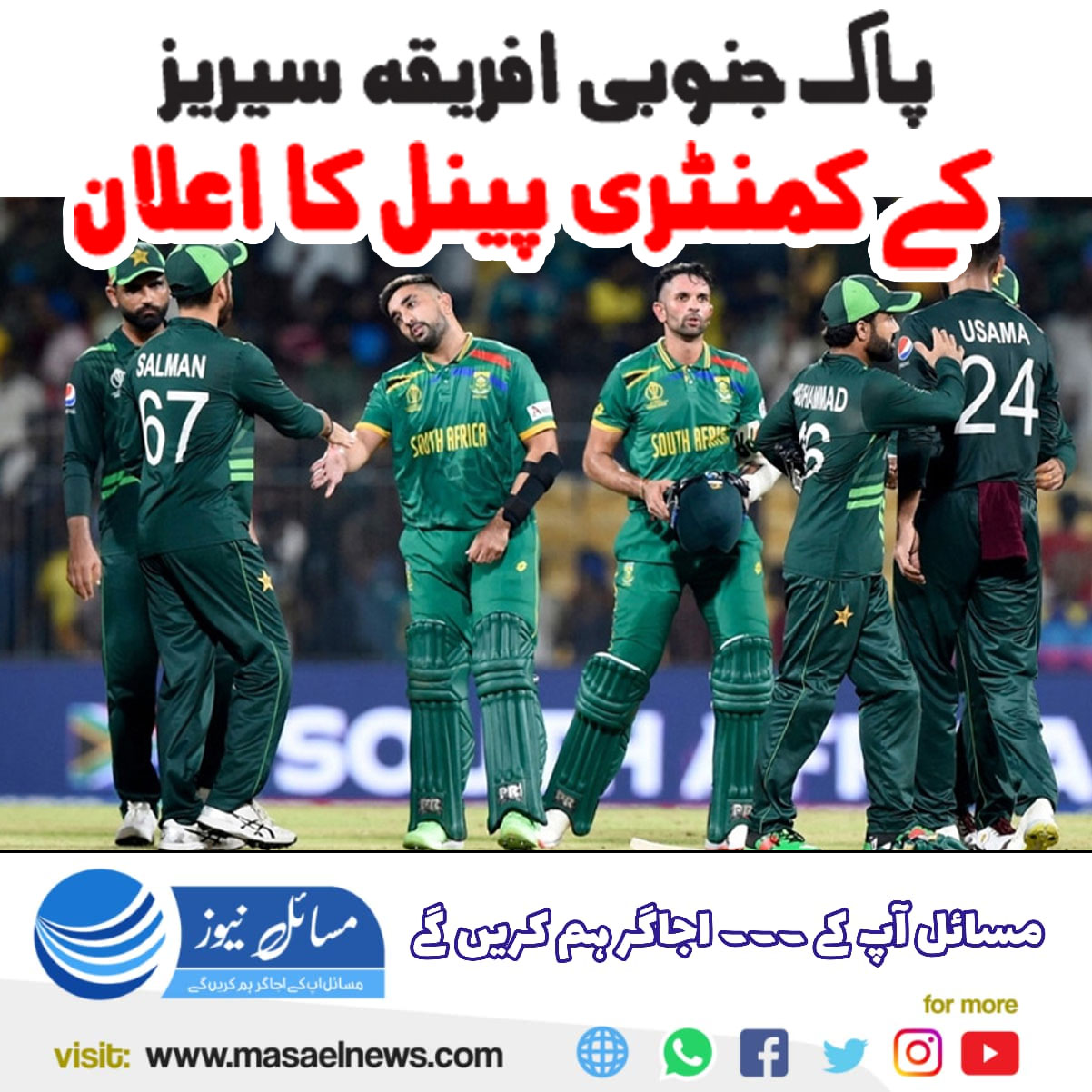 جنوبی افریقہ (مسائل نیوز)پاکستان اور جنوبی افریقہ کی کرکٹ ٹیموں کے درمیان سیریز کی نشریاتی تفصیلات جاری کر دی گئیں۔