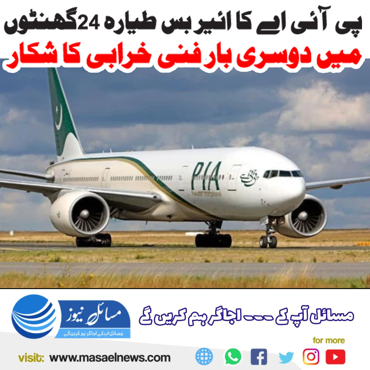 کراچی(مسائل نیوز)قومی ایئرلائن (پی آئی اے) کا ائیر بس ساختہ طیارہ مسلسل دوسرے دن فنی خرابی کے باعث گراؤنڈ کر دیا گیا، جس کے باعث پاکستان سے العین جانے والی پرواز پی کے 143 کئی گھنٹے تاخیر کا شکار ہوگئی۔