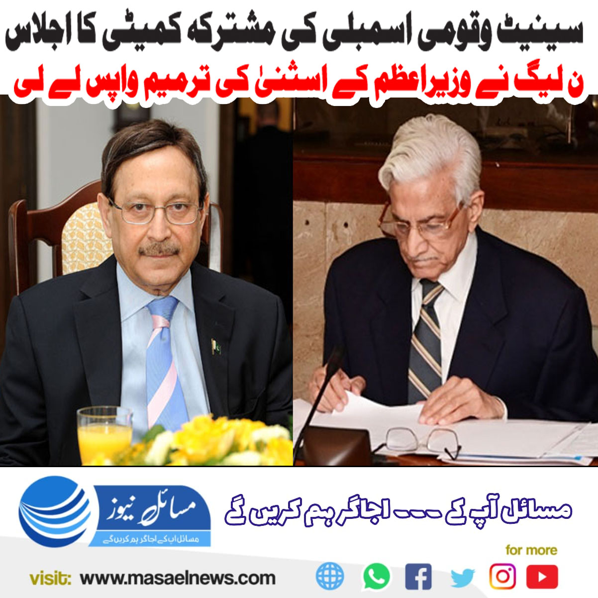 سینیٹ و قومی اسمبلی کی مشترکہ کمیٹی کا اجلاس، ن لیگ نے وزیراعظم کے استثنیٰ کی ترمیم واپس لے لی