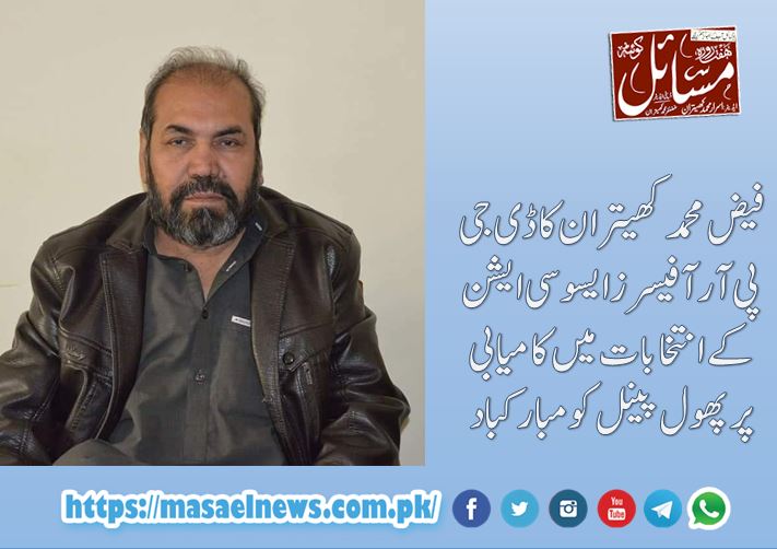 فیض محمد کھیتران کا ڈی جی پی آر آفیسرز ایسوسی ایشن کے انتخابات میں کامیابی پر پھول پینل کو مبارکباد