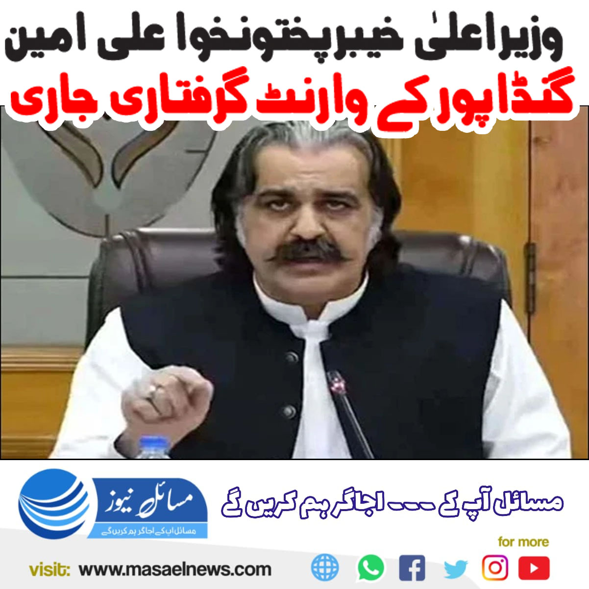 اسلام آباد(مسائل نیوز)عدالت نے وزیراعلیٰ خیبر پختونخوا علی امین گنڈاپور کے وارنٹ گرفتاری جاری کردیے۔