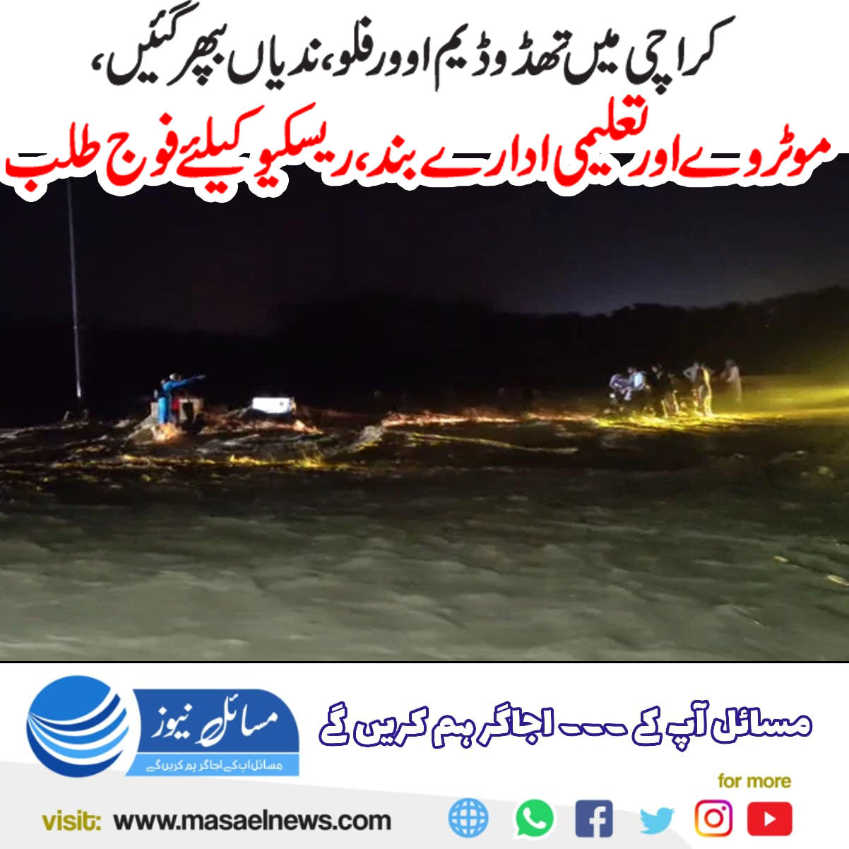 کراچی(مسائل نیوز)شہر قائد میں شدید بارشوں کے باعث تھڈو ڈیم اوور فلو کر گیا، جس کے بعد سیلابی پانی کا طاقتور ریلا ایم 9 موٹروے تک پہنچ گیا۔