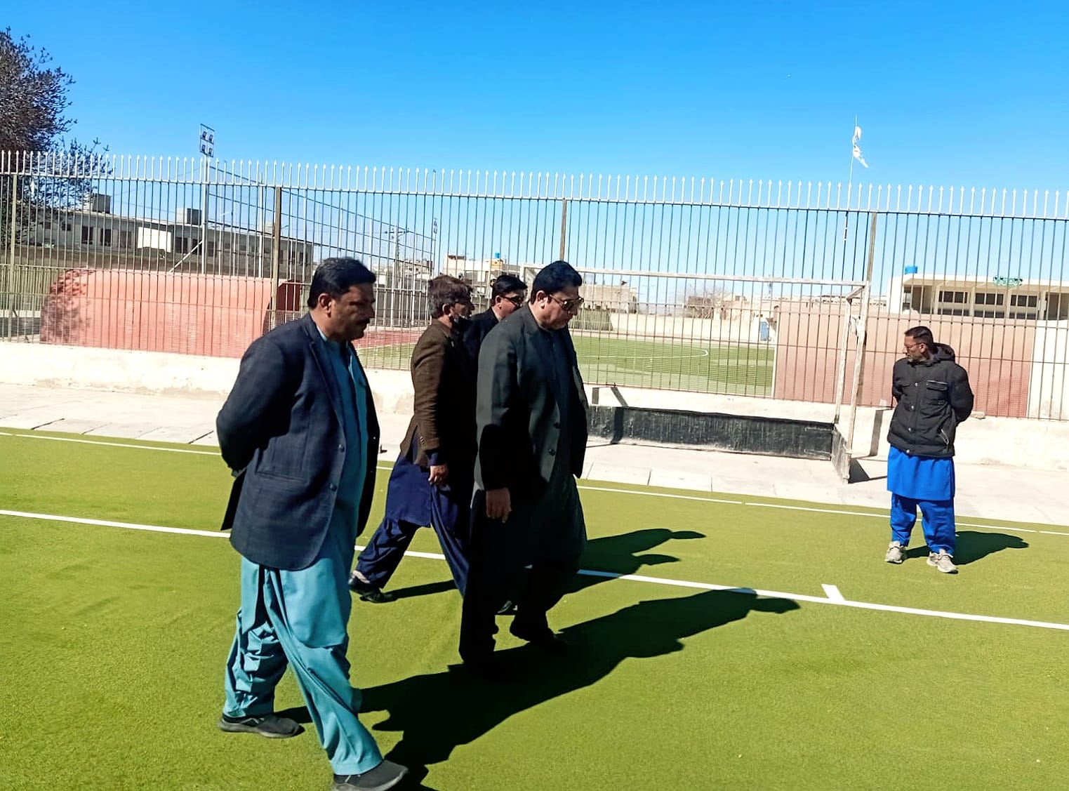 ڈائریکٹر جنرل کھیل دُرا بلوچ نے گراؤنڈ میں باقی ترقیاتی کام کا جائزہ لیا اور ٹھیکیدار کو کام کی رفتار بڑھانے اور بروقت مکمل کرنے کی ہدایات دیں۔ ڈائریکٹر جنرل کھیل بلوچستان دُرا بلوچ کا مزید کہنا تھا کہ محکمہ کھیل حکومت بلوچستان کھیلوں کے فروغ کے لٸے نمایاں کردار ادا کر رہی ہے اور بلوچستان کے کھلاڑیوں کو کھیلوں کے مواقع فراہم کرنے کے لٸے بہترین اقدامات اٹھا رہی ہے ہماری کوشش ہے قومی کھیل ہاکی میں ملک اپنا کھویا ہوا مقام دوبارہ حاصل کرۓ۔