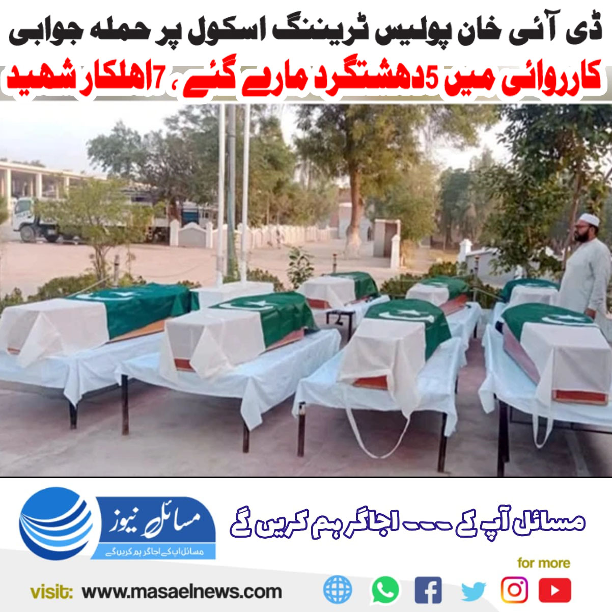 ڈیرہ اسماعیل خان (مسائل نیوز)ڈیرہ اسماعیل خان میں پولیس ٹریننگ اسکول پر دہشتگردوں کے حملے کو سکیورٹی فورسز نے بھرپور کارروائی کے بعد ناکام بنا دیا۔