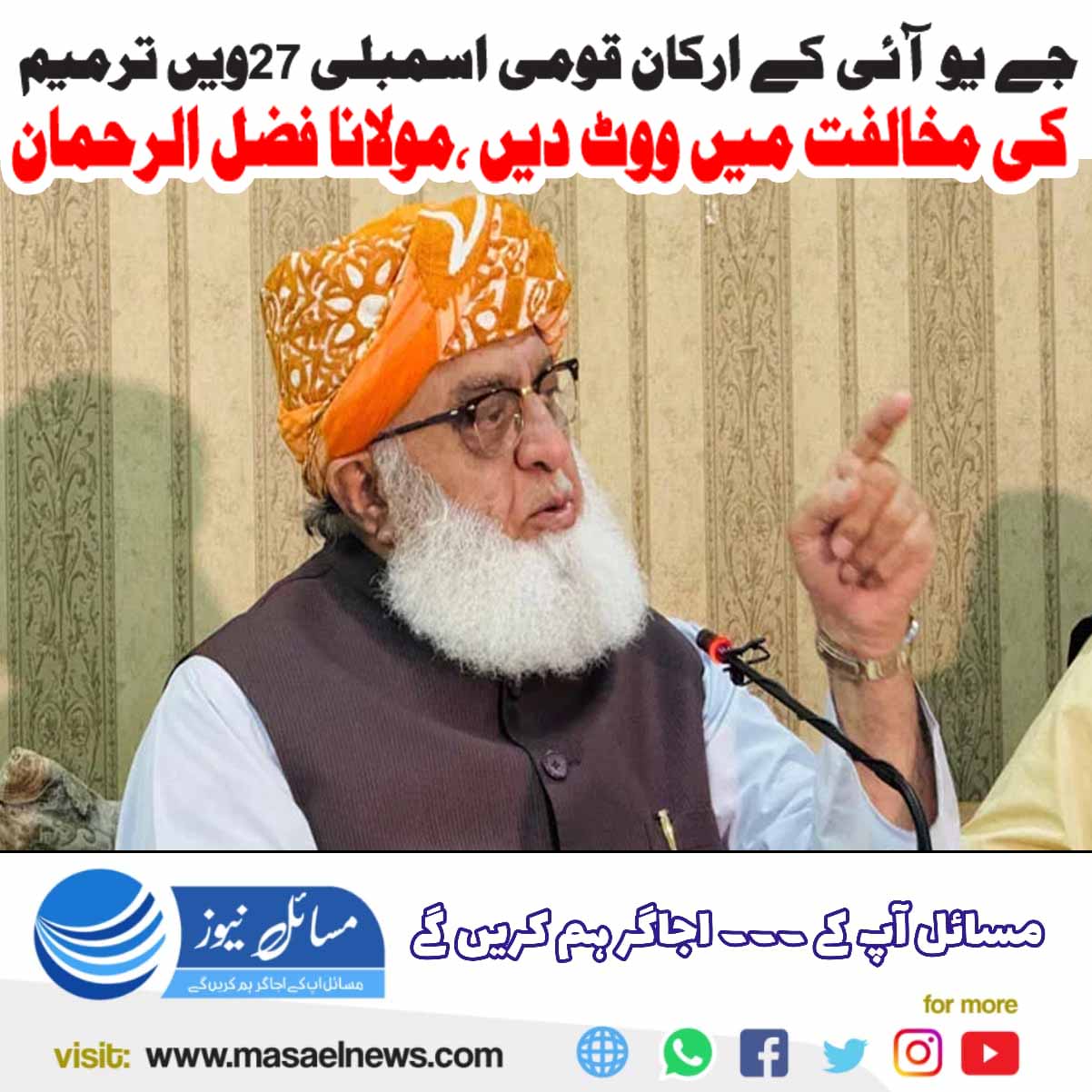 جے یو آئی کے ارکان قومی اسمبلی 27 ویں ترمیم کی مخالفت میں ووٹ دیں: مولانا فضل الرحمان