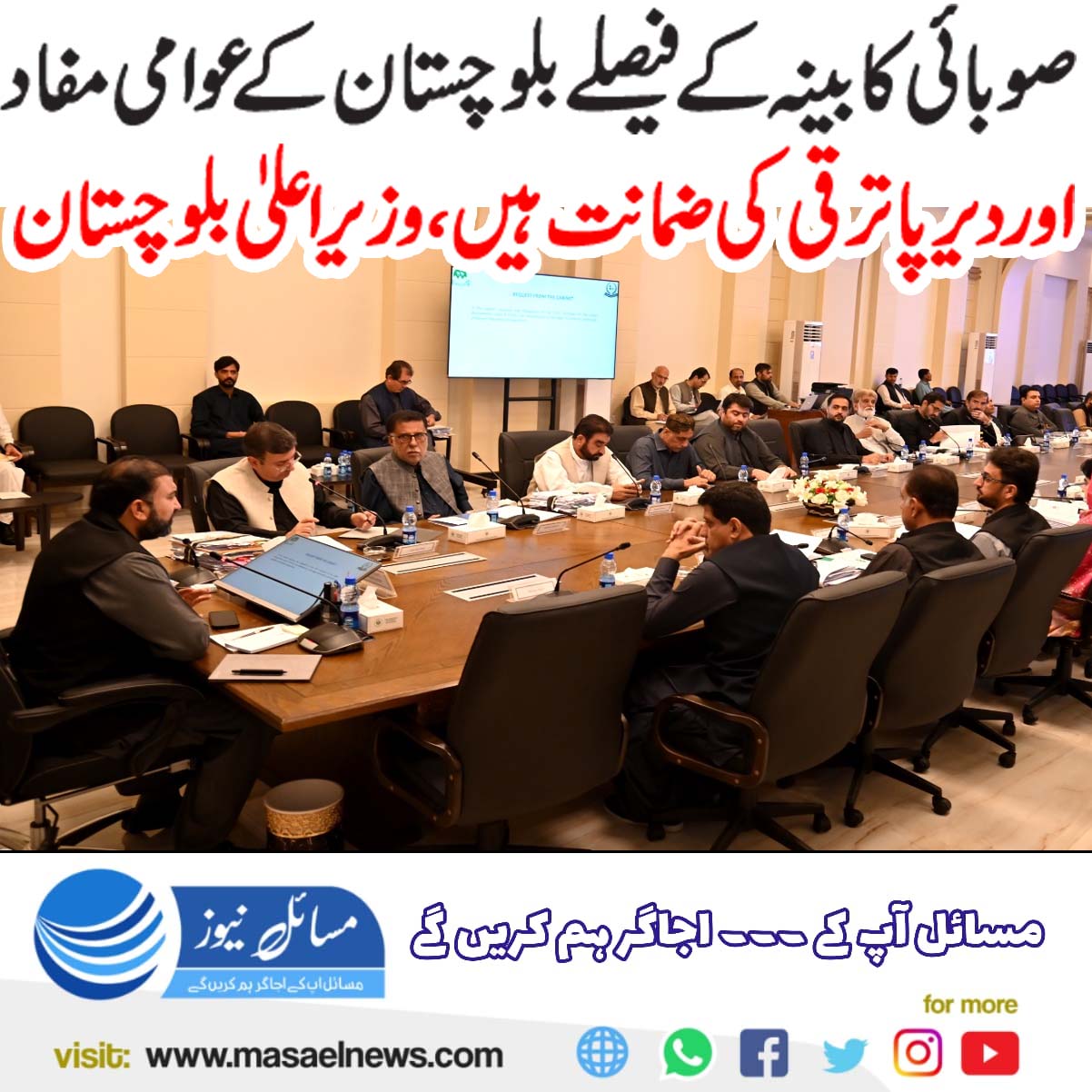 وزیر اعلیٰ بلوچستان میر سرفراز بگٹی نے کہا ہے کہ صوبائی کابینہ کے فیصلے بلوچستان کے عوامی مفاد اور دیرپا ترقی کی ضمانت ہیں،