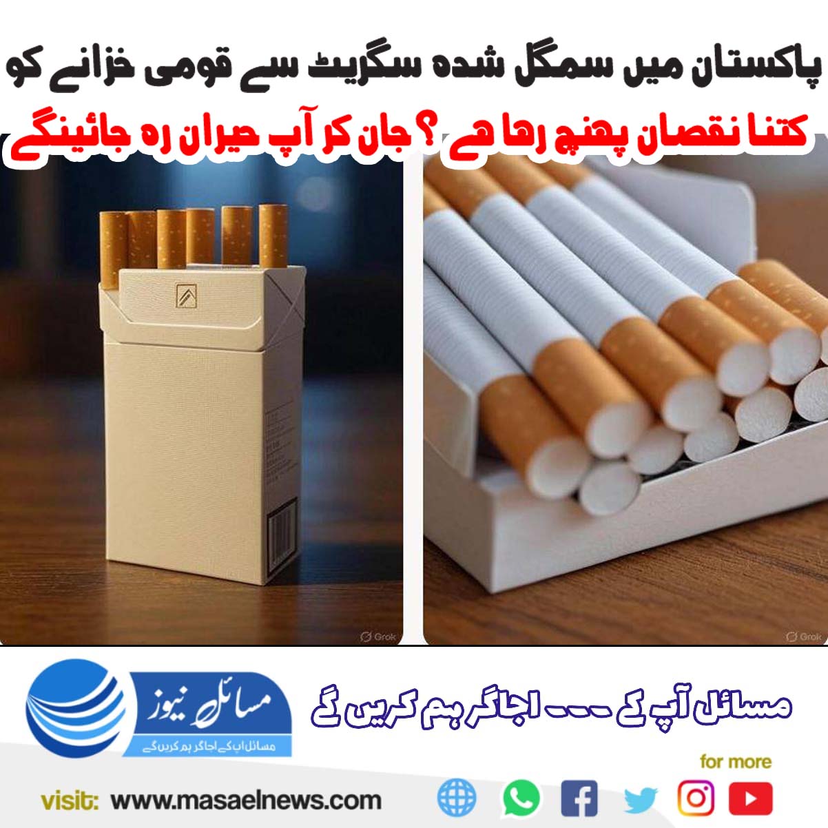 اسلام آباد(مسائل نیوز)پاکستان میں سمگل شدہ سگریٹ سے قومی خزانے کو کتنا نقصان پہنچ رہا ہے ؟ جان کر آپ حیران رہ جائیں ۔