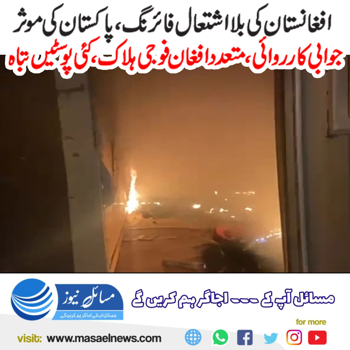 سیکیورٹی ذرائع نے بتایا کہ پاکستانی فوج کی چوکس اور مستعد پوسٹوں کی جانب سے تیزی کے ساتھ بھرپور اور شدید جواب دیا گیا جو اب بھی جاری ہے، پاک فوج نے فوری طور پر شدید رد عمل دیتے ہوئے متعدد افغانی پوسٹوں کو مؤثر طریقے سے نشانہ بنایا۔