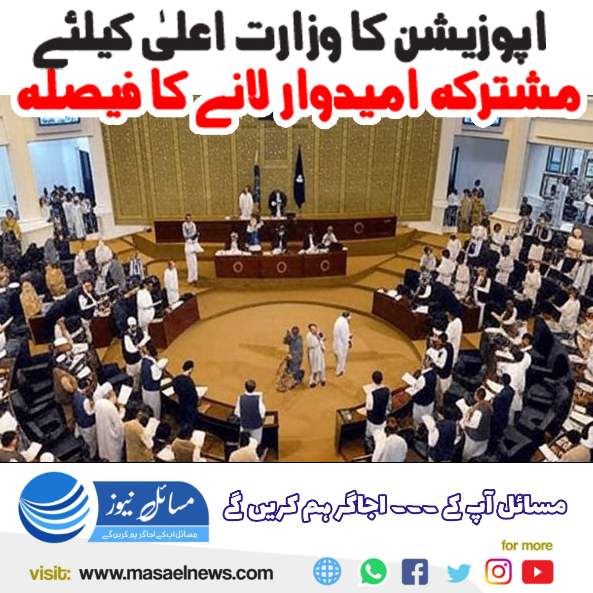 پشاور(مسائل نیوز)خیبرپختونخوا کی اپوزیشن جماعتوں نے وزارت اعلیٰ کیلئے مشترکہ امیدوار لانے کا فیصلہ کیا ہے۔