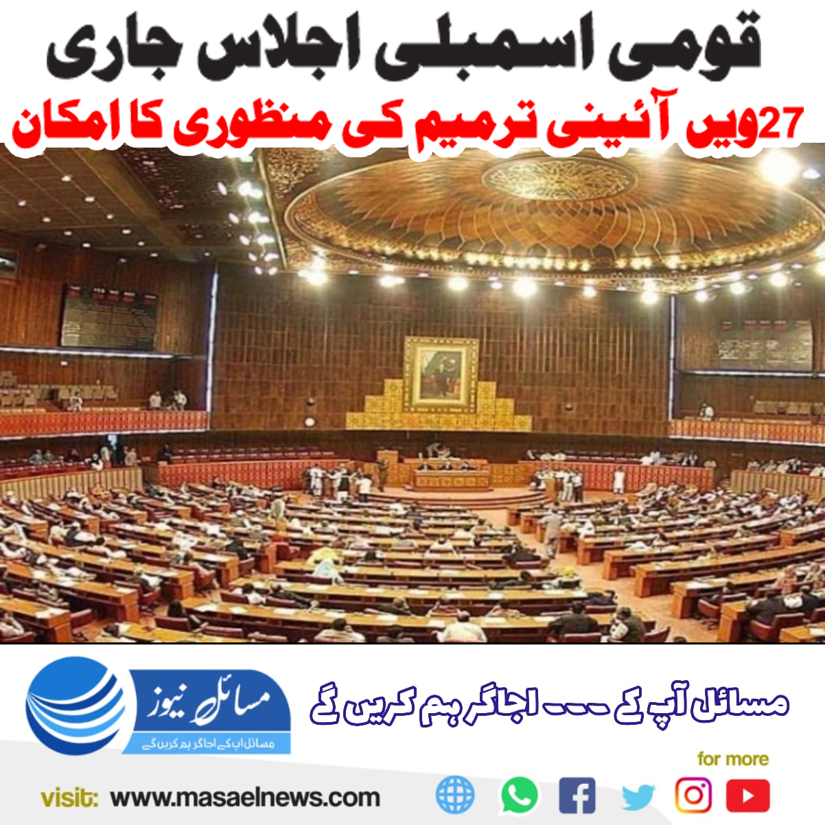 قومی اسمبلی میں 27 ویں آئینی ترمیم پر گزشتہ روز سے بحث جاری ہے، جس کی آج منظوری کا قوی امکان ہے۔