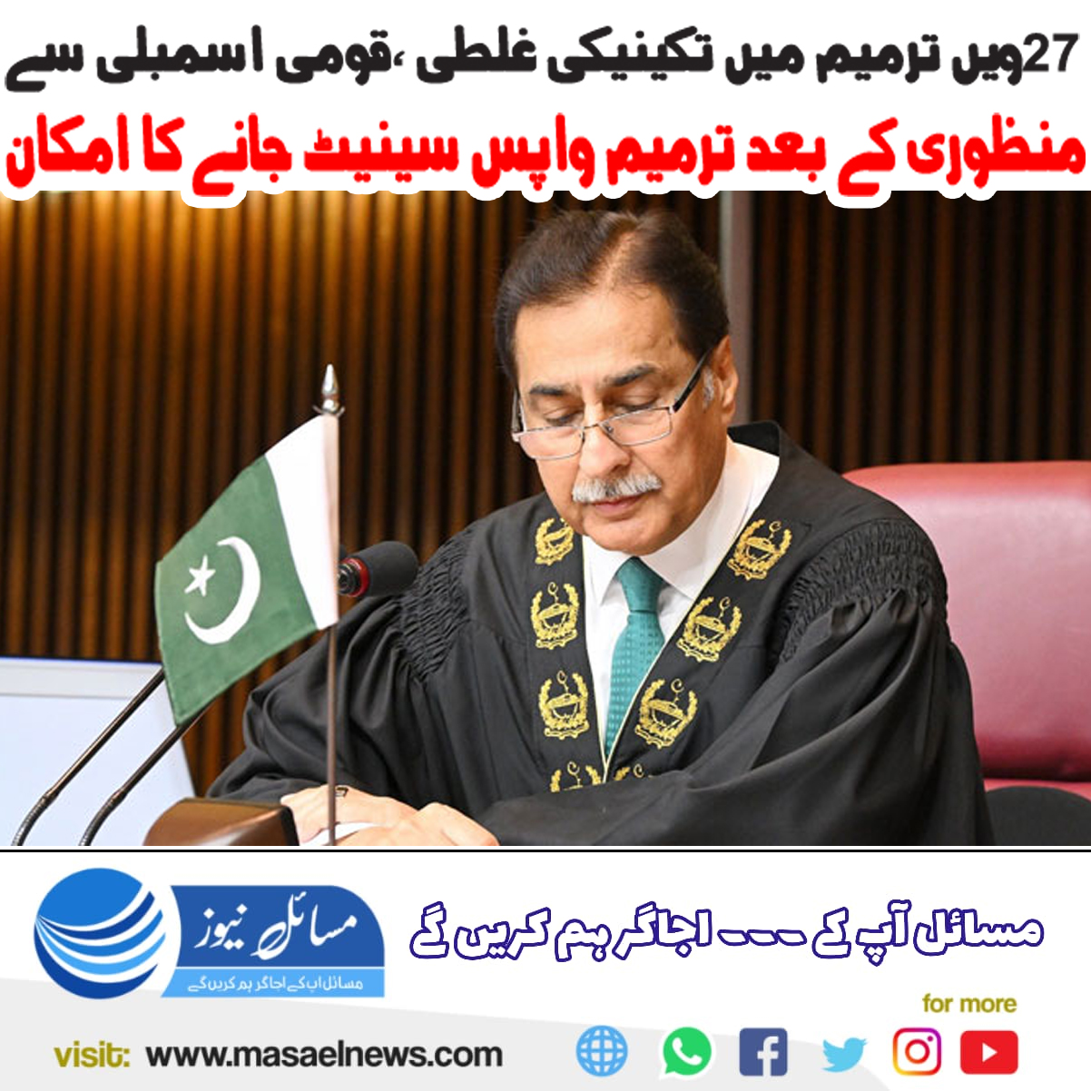 27 ویں ترمیم میں تکنیکی غلطی، قومی اسمبلی سے منظوری کے بعد ترمیم واپس سینیٹ جانے کا امکان