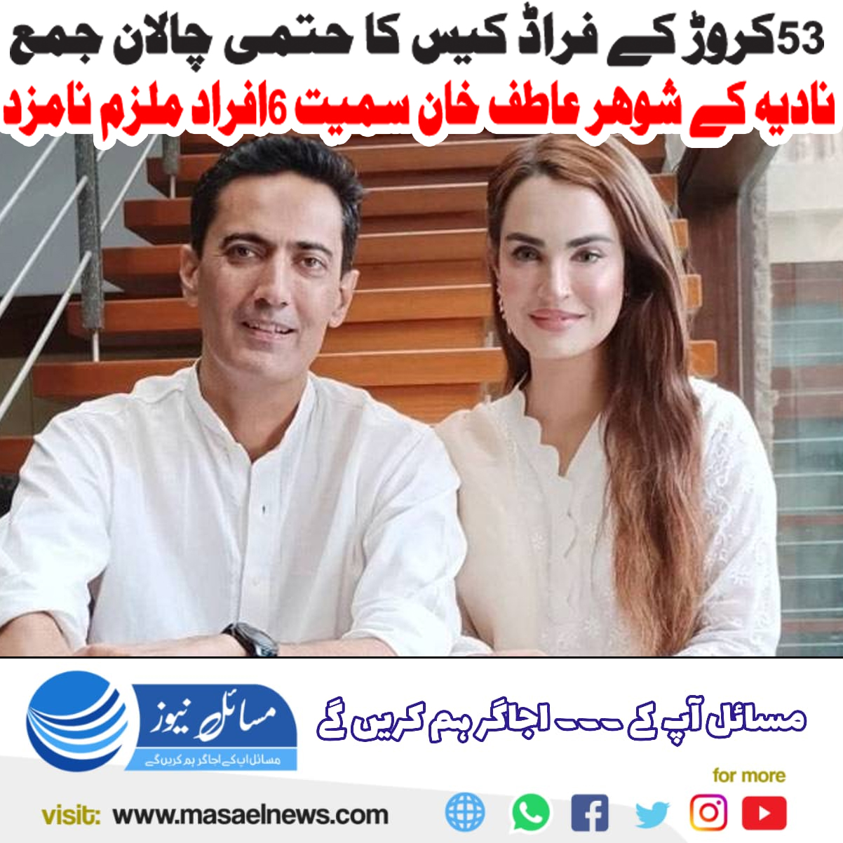 53 کروڑ کے فراڈ کیس کا حتمی چالان جمع، نادیہ کے شوہر عاطف خان سمیت 6 افراد ملزم نامزد