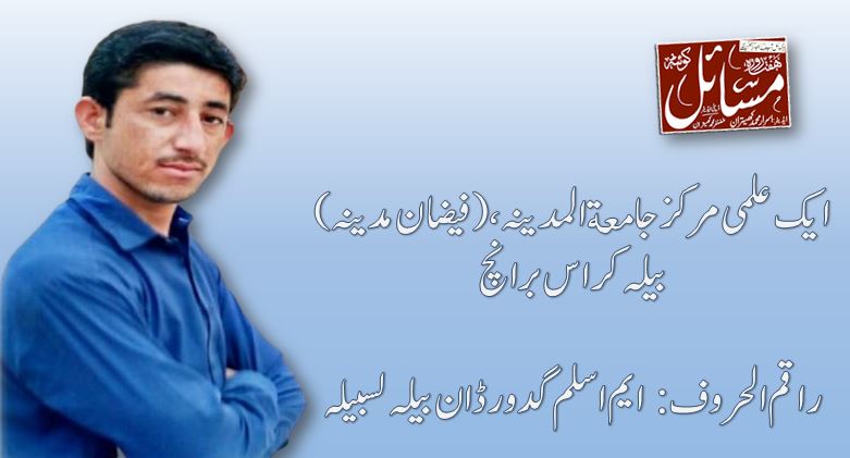 جامعتہ المدینہ، فیضان مدینہ (بیلہ کراس برانچ) 2012 سے بیلہ میں دینی و دنیاوی تعلیم کے فروغ کیلیے اپنے فراٸض سرانجام دہی میں مصروف عمل ہے۔ اس وقت ایک سو کے لگ بھگ طلبا۶ زیر تعلیم ہیں۔ اس جامعہ میں درس نظامی تک پڑھانے کی سہولت موجود ہے۔ درس نظامی کے ابتداٸ درجات مکمل کرنے کے بعد طلبا۶ کو مزید تعلیم جاری رکھنے کیلیے جامعہ اپنی زمہ داری کے طور پر فیضان مدینہ بھیجتا ہے۔ گزشتہ روز جامعتہ المدینہ بیلہ کراس برانچ وزٹ کرنے و جامعہ کے ناظم (پرنسپل) سے کچھ سوالات کرنے کا موقع ملا جو کہ مداحوں کے زیرخدمت ہے