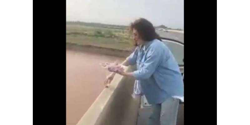 سوشل میڈیا پر ایک ویڈیو وائرل ہورہی ہے جس میں دیکھا گیا کہ بظاہر اداکارہ ریشم ایک پُل پر اپنی گاڑی سے نیچے اتر کر پلاسٹک کی تھیلی سے گوشت کے ٹکڑے اور پھر ڈبل روٹی نکال کر دریا میں مچھلیوں کے لیے پھینک رہی ہیں۔