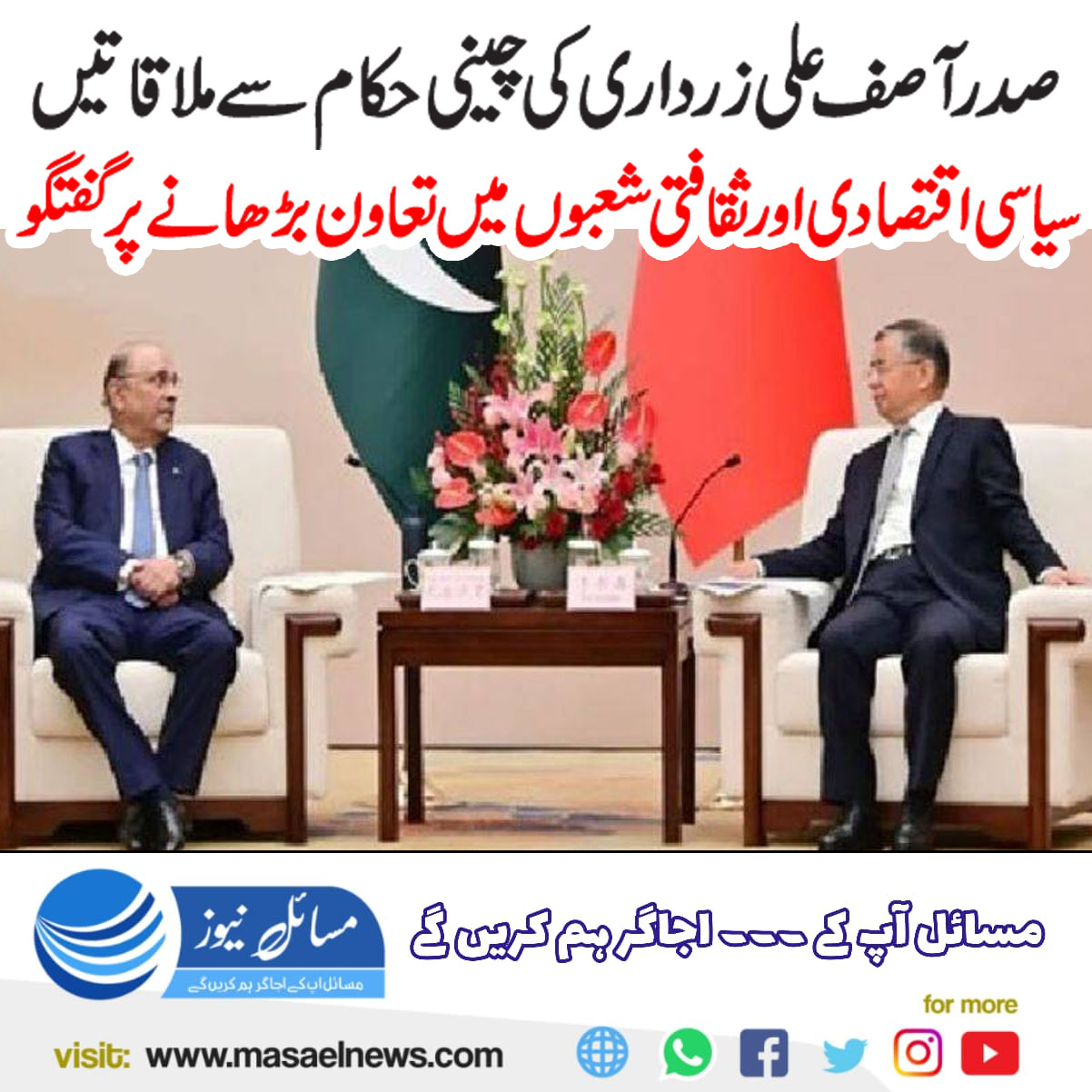 صدر مملکت آصف زرداری کی چینی حکام سے ملاقاتیں،سیاسی، اقتصادی اور ثقافتی شعبوں میں تعاون بڑھانے پر گفتگو
