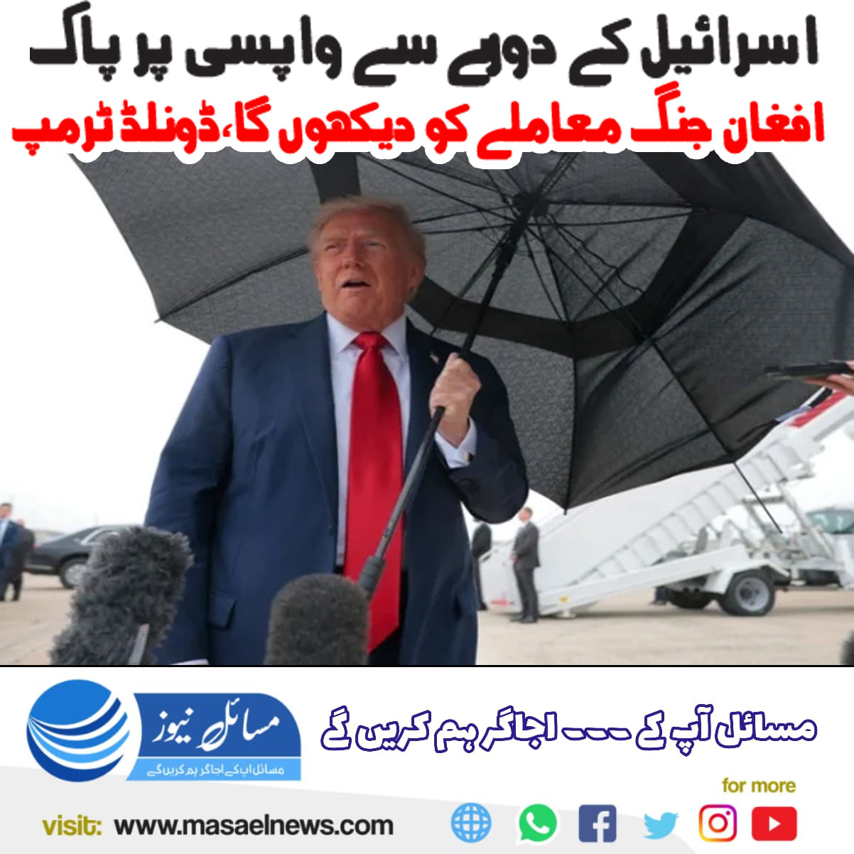 اسرائیل کے دورے سے واپسی پر پاک افغان جنگ معاملے کو دیکھوں گا، ڈونلڈ ٹرمپ