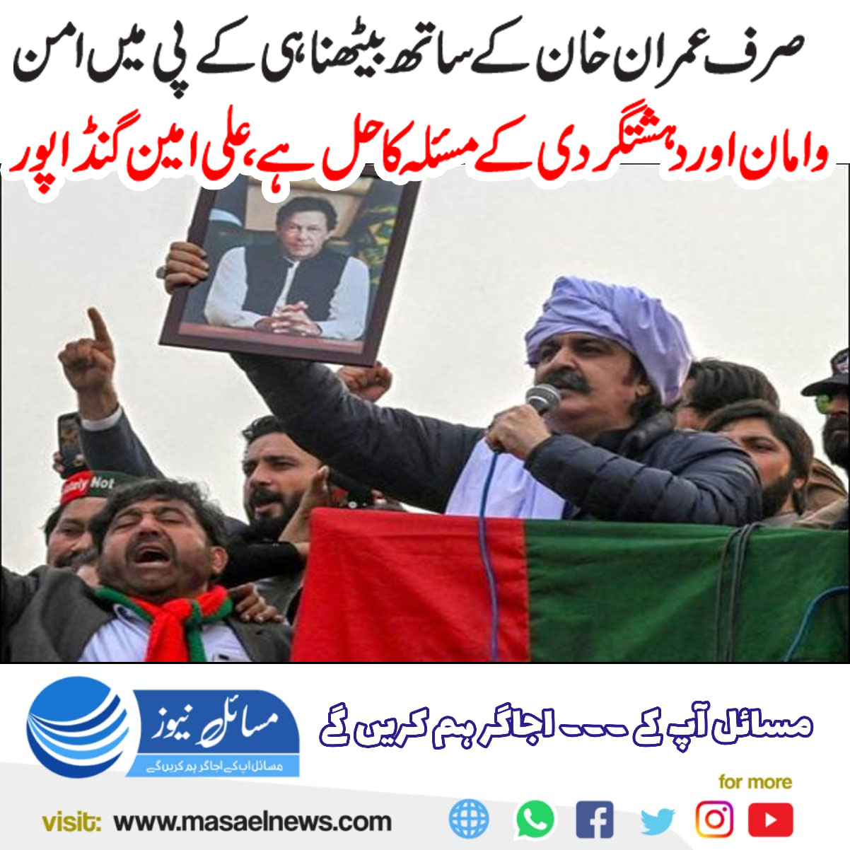 پشاور(ّمسائل نیوز)مستعفی وزیر اعلیٰ خیبرپختونخوا علی امین گنڈا پور نے کہا ہے کہ ہمارے صوبے میں امن وامان اور دہشتگردی کا مسئلہ ہے، اس کا ایک ہی حل ہے کہ قیدی نمبر 804 (بانی پی ٹی آئی عمران خان) کے ساتھ بیٹھیں۔