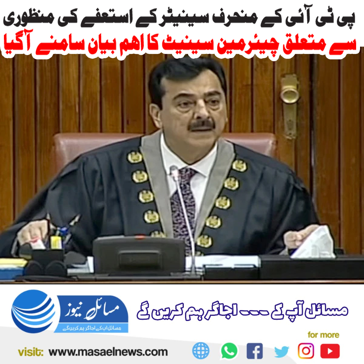 پی ٹی آئی کے منحرف سینیٹر کے استعفے کی منظوری سے متعلق چیئرمین سینیٹ کا اہم بیان سامنے آگیا