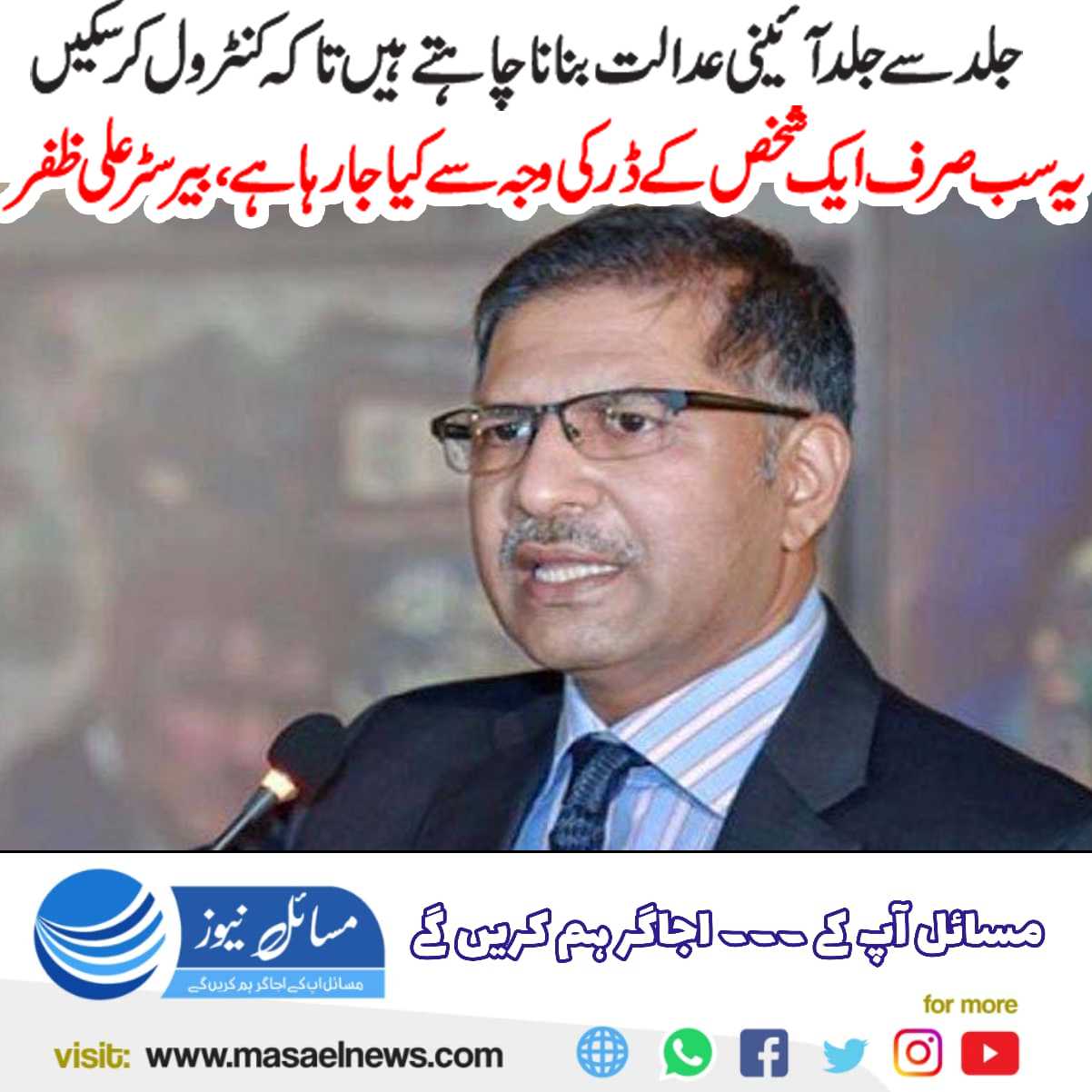 جلد سے جلد آئینی عدالت بنانا چاہتے ہیں تاکہ کنٹرول کر سکیں،یہ سب صرف ایک شخص کے ڈر کی وجہ سے کیا جارہا ہے،بیرسٹر علی ظفر