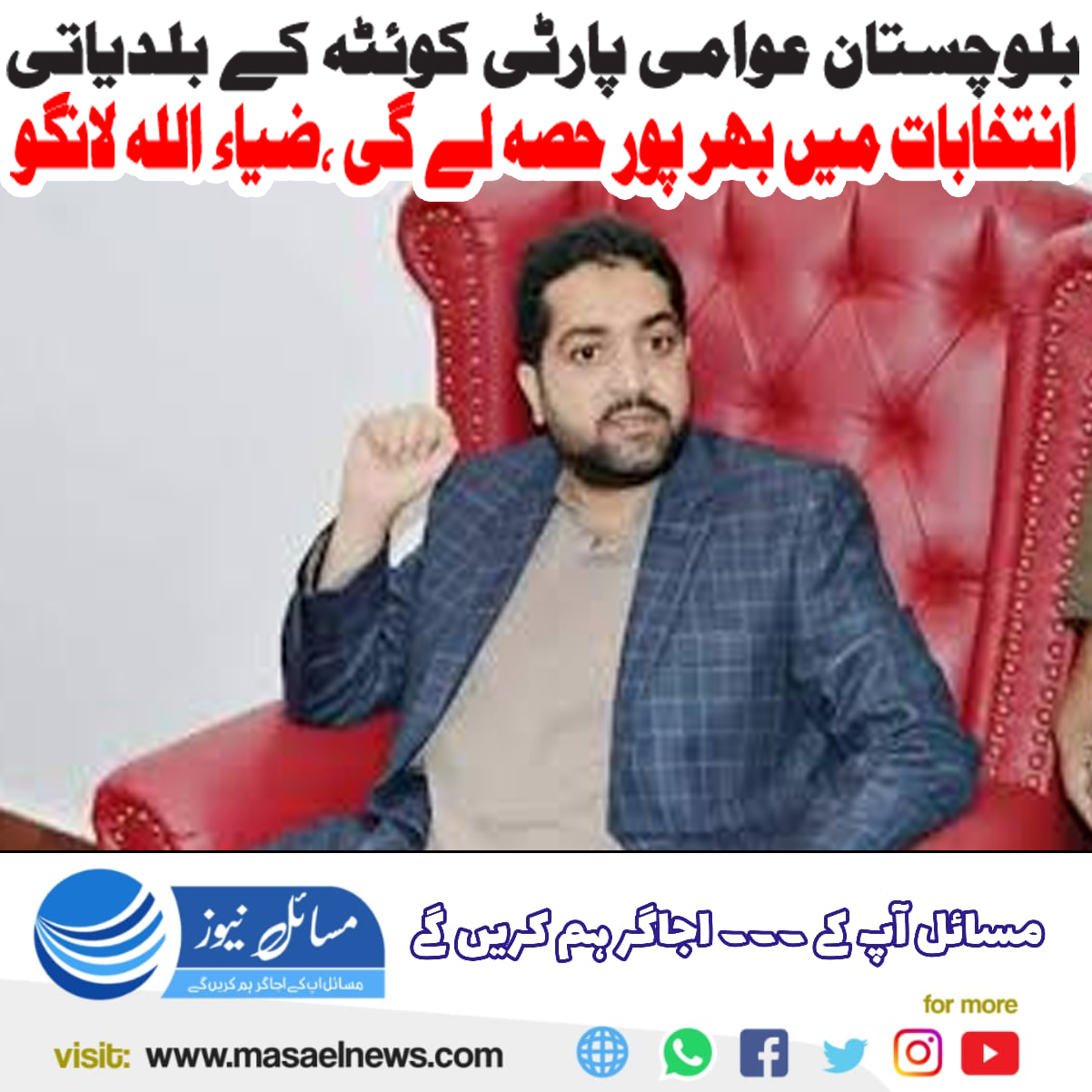 بلوچستان عوامی پارٹی کوئٹہ کے بلدیاتی انتخابات میں بھرپور حصہ لے گی، میر ضیااللہ لانگو