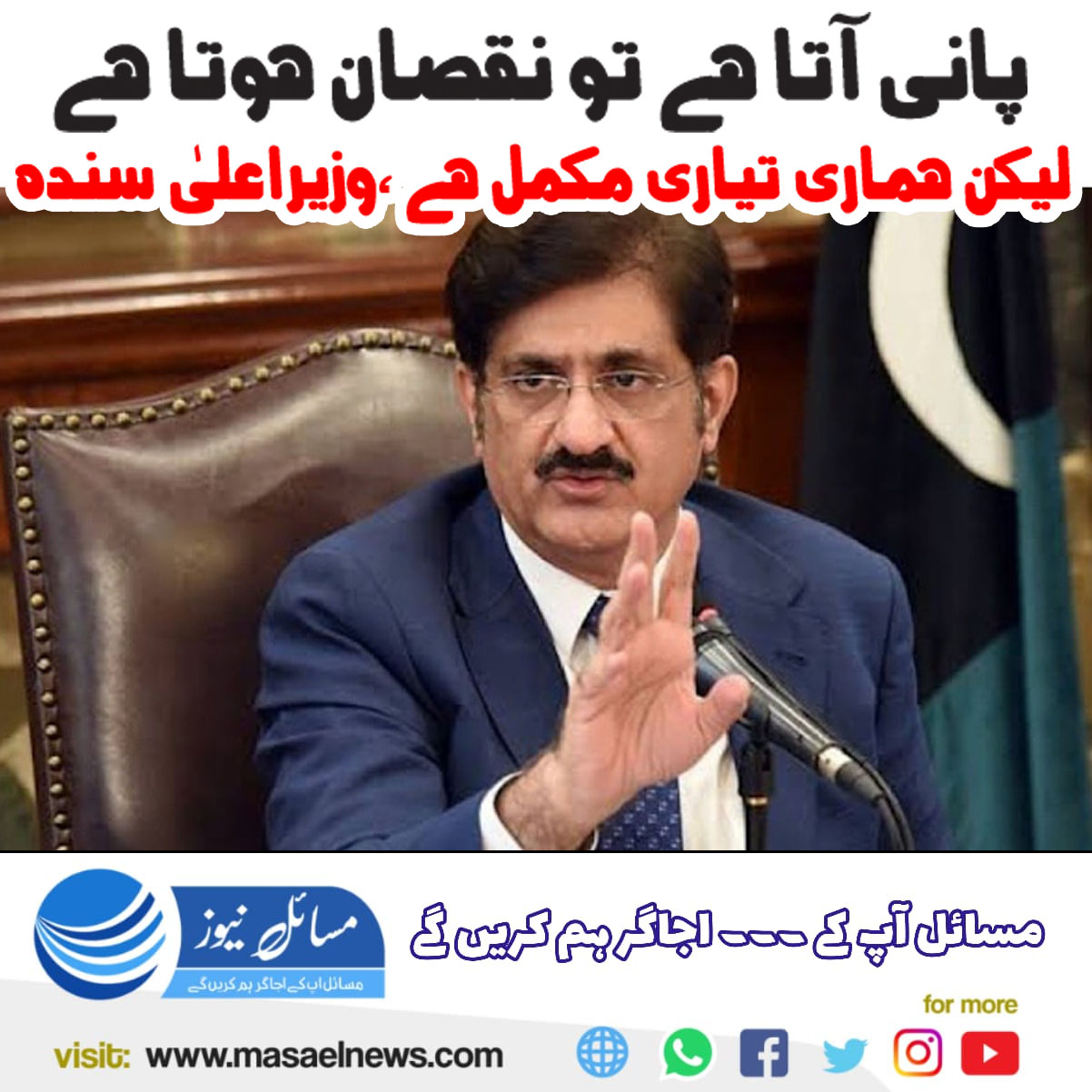 پانی آتا ہے تو نقصان ہوتا ہے لیکن ہماری تیاری مکمل ہے: وزیر اعلیٰ سندھ