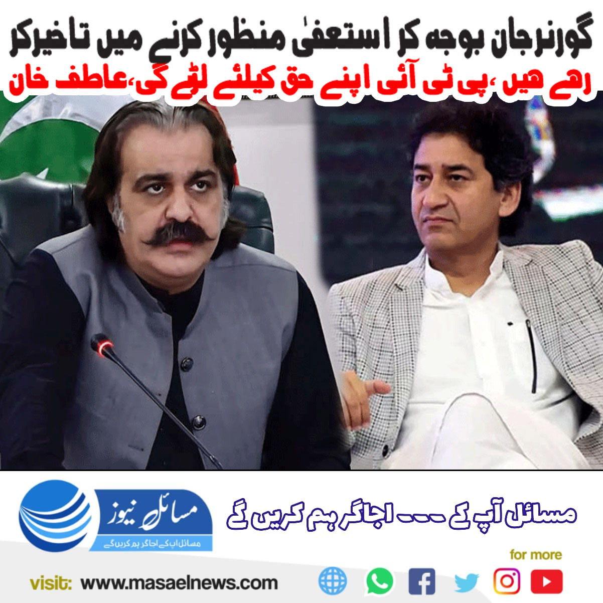گورنر جان بوجھ کر استعفیٰ منظور کرنے میں تاخیر کر رہے ہیں، پی ٹی آئی اپنےحق کیلئے لڑے گی:عاطف خان