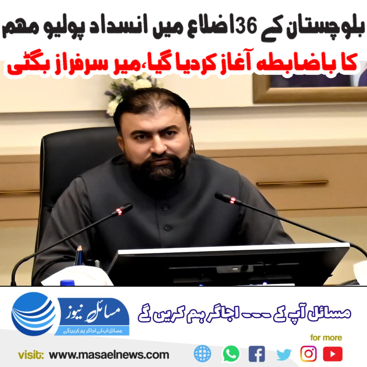 ، وزیر اعلیٰ بلوچستان میر سرفراز بگٹی نے کہا کہ الحمدللہ، اس سال بلوچستان سے کوئی پولیو کیس رپورٹ نہیں ہوا