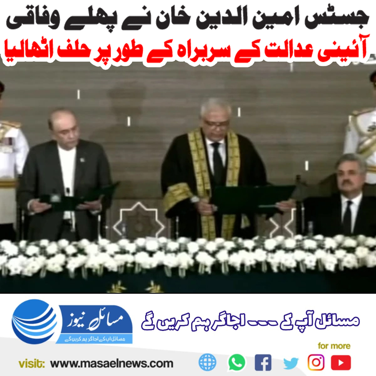 آئینی عدالت کے سربراہ جسٹس امین الدین دیگر ججز سے حلف لیں گے۔ حلف برداری تقریب کے لیے ممکنہ وقت 11 بجے کا مقرر کیا گیا ہے۔