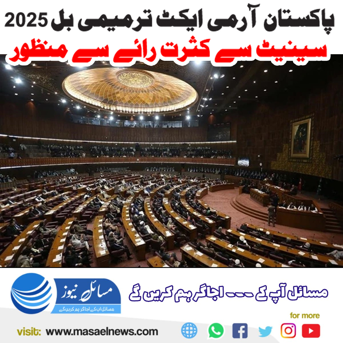 اسلام آباد(مسائل نیوز)سینیٹ اجلاس میں آرمی ایکٹ ترمیمی بل 2025 کثرت رائے سے منظور کر لیا گیا، جے یو آئی ف کے رکن کامران مرتضیٰ نے بل کی مخالفت کی۔