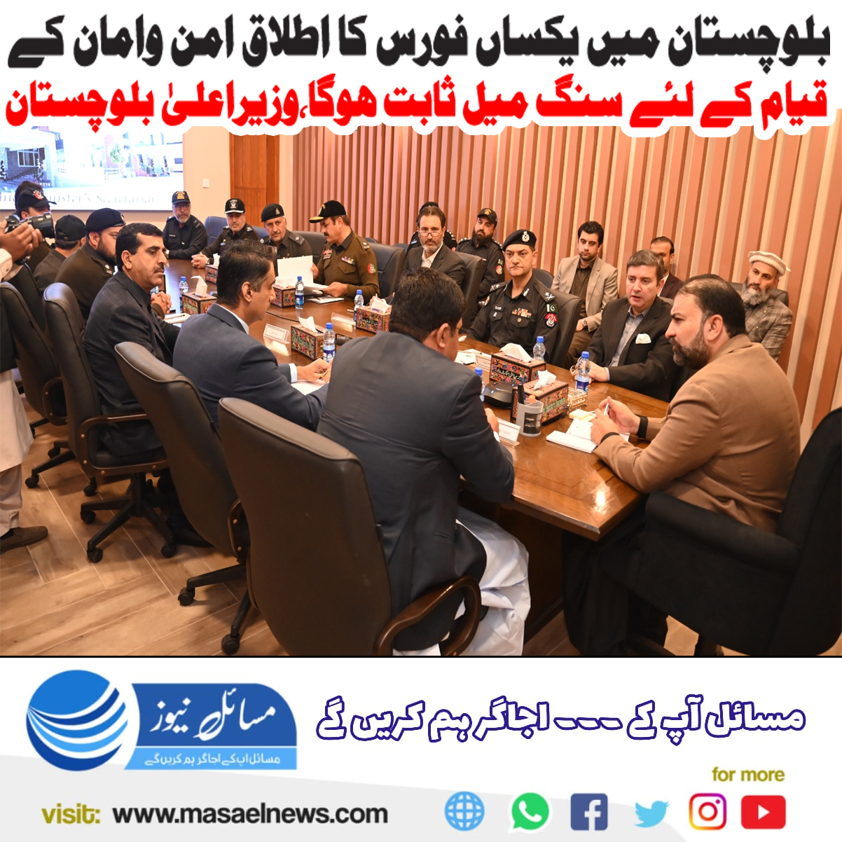وزیر اعلیٰ نے کہا کہ پورے بلوچستان میں یکساں فورس کا اطلاق امن و امان کے قیام کے لیے سنگِ میل ثابت ہوگا جبکہ حکومت کی اولین ترجیحات میں افسران اور اہلکاروں کی ویلفیئر اور پیشہ ورانہ ترقی شامل ہے انہوں نے واضح کیا کہ لیویز سے پولیس میں منتقلی کا عمل مرحلہ وار اور مربوط حکمتِ عملی کے تحت مکمل کیا جائے گا وزیر اعلیٰ نے کہا کہ بلوچستان میں پائیدار قیام امن کے لیے حکومت کے اقدامات کو مزید مؤثر اور جدید تقاضوں سے ہم آہنگ کیا جا رہا ہے تاکہ ایک مضبوط، پیشہ ور اور یکساں فورس صوبے کے عوام کی بہتر خدمت کر سکے