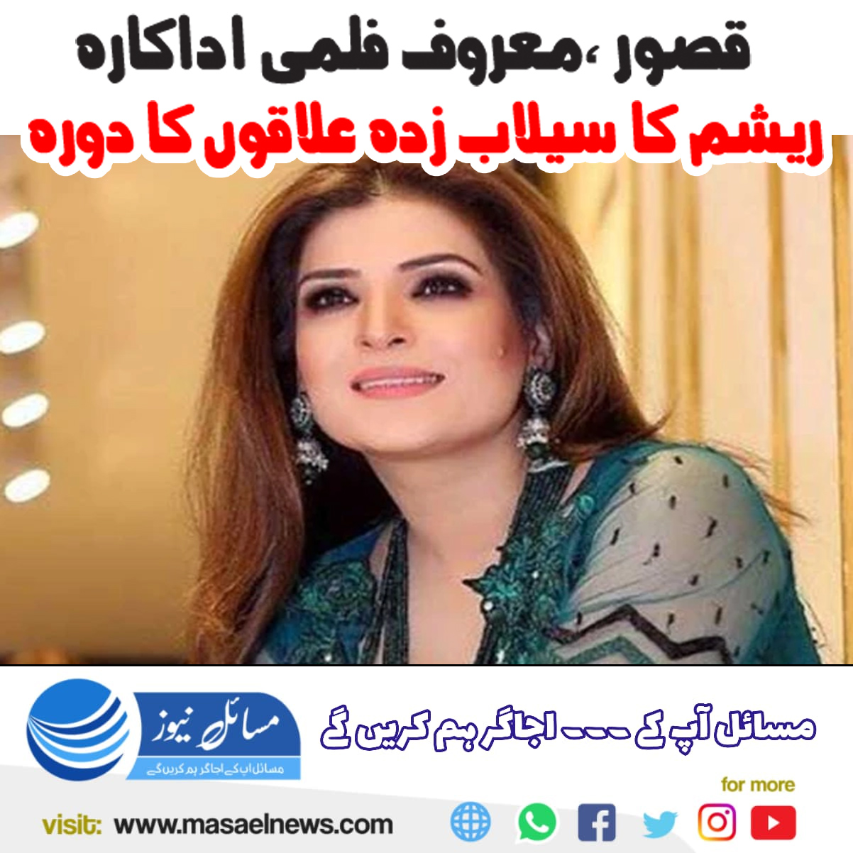 قصور، معروف فلمی اداکارہ ریشم کا سیلاب زدہ علاقوں کا دورہ