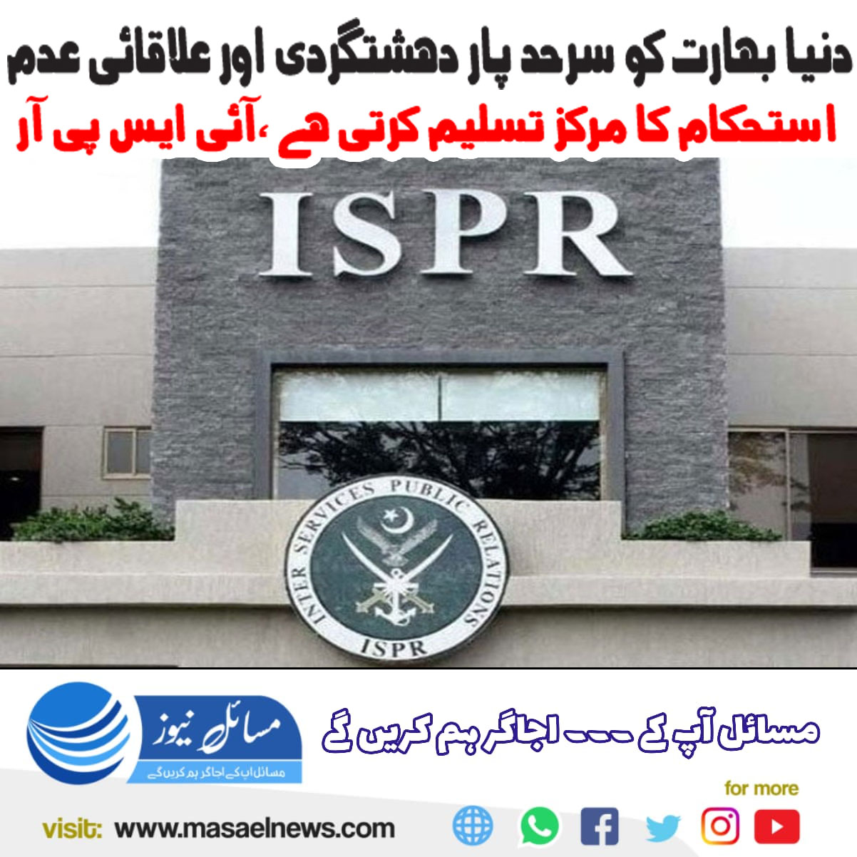 راولپنڈی(مسائل نیوز)ترجمان پاک فوج نے کہا ہے کہ دنیا بھارت کو سرحد پار دہشت گردی کا حقیقی چہرہ اور علاقائی عدم استحکام کا مرکز تسلیم کرتی ہے۔