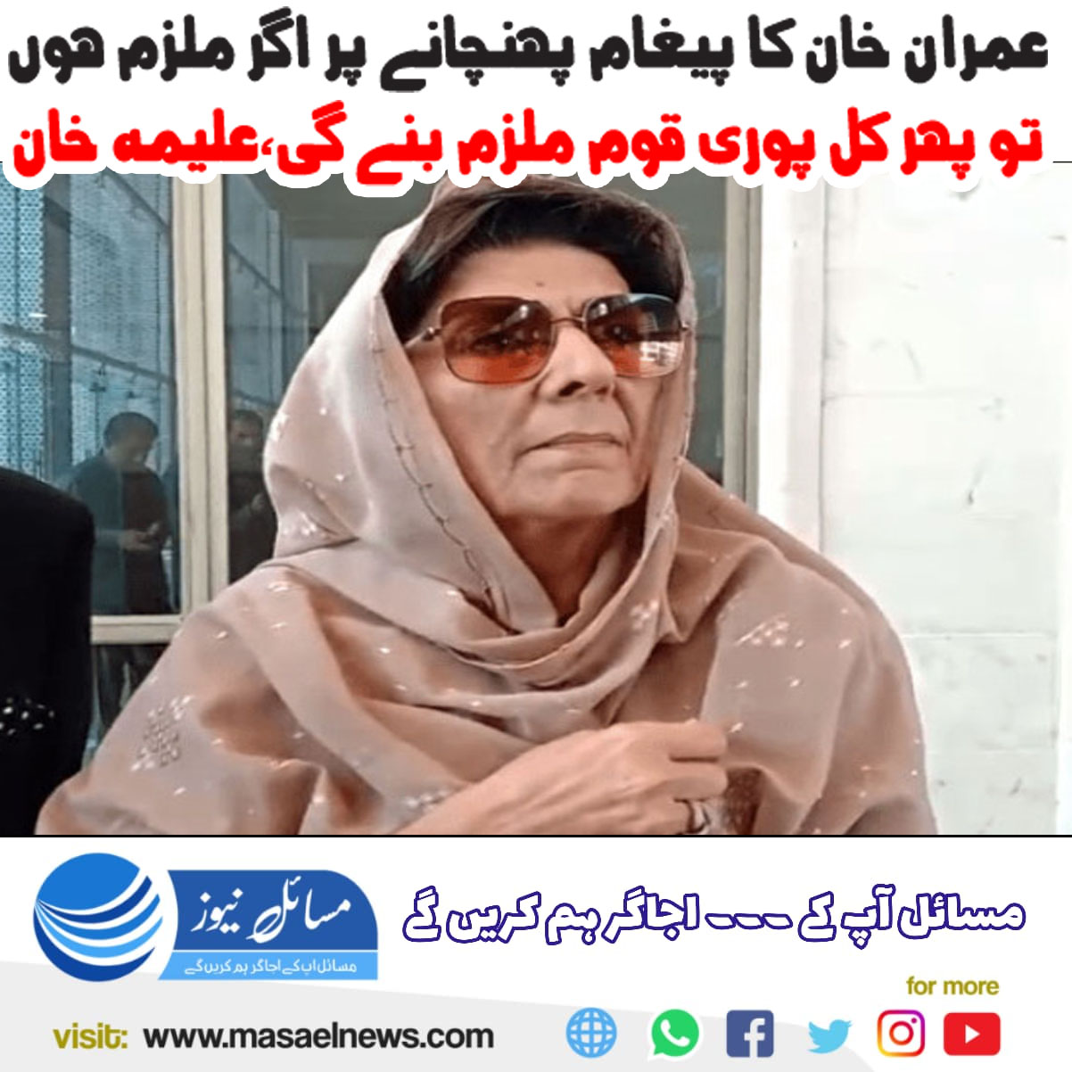 عمران خان کا پیغام پہنچانے پر اگر میں ملزم ہوں تو پھر کل پوری قوم ملزم بنے گی، علیمہ خان