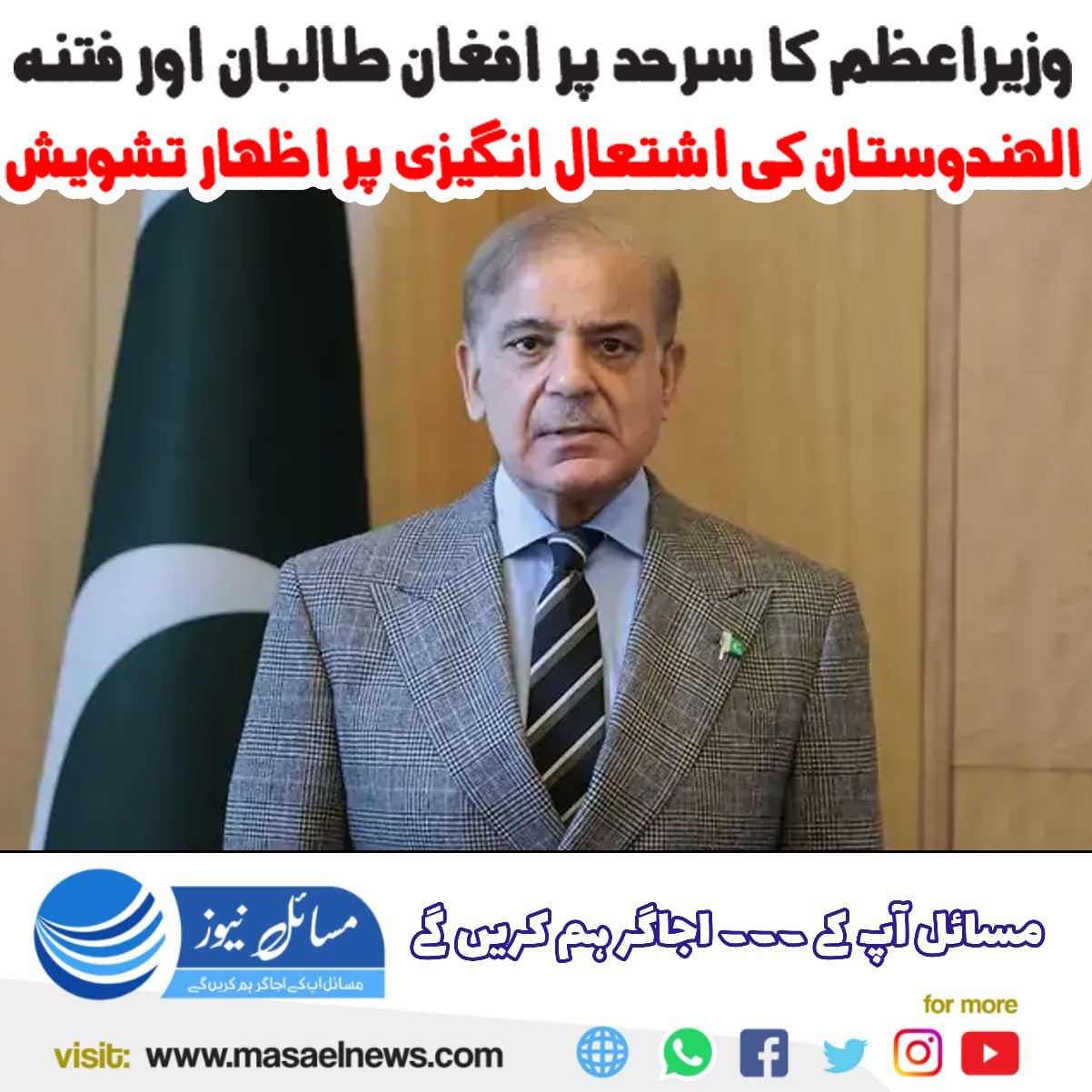 اسلام آباد(مسائل نیوز)وزیراعظم محمد شہباز شریف نے پاک افغان سرحد پر افغان طالبان، فتنۃ الہندوستان اور فتنۃ الخوارج کی جانب سے اشتعال انگیزی پر تشویش کا اظہار کیا ہے۔