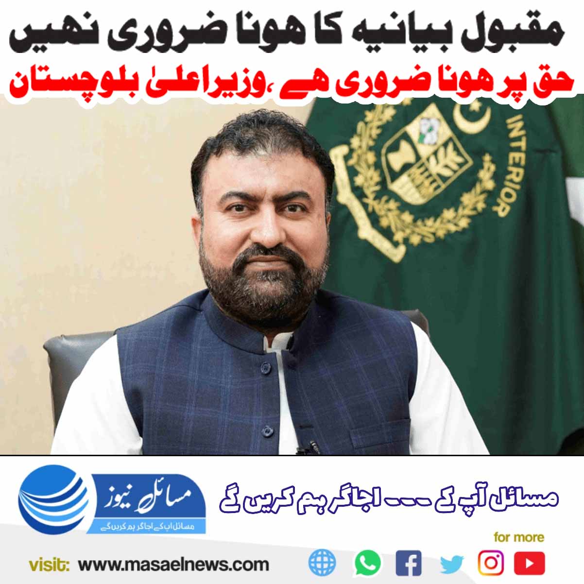 مقبول بیانیہ کا ہونا ضروری نہیں حق پر ہونا ضروری ہے، وزیر اعلٰی بلوچستان