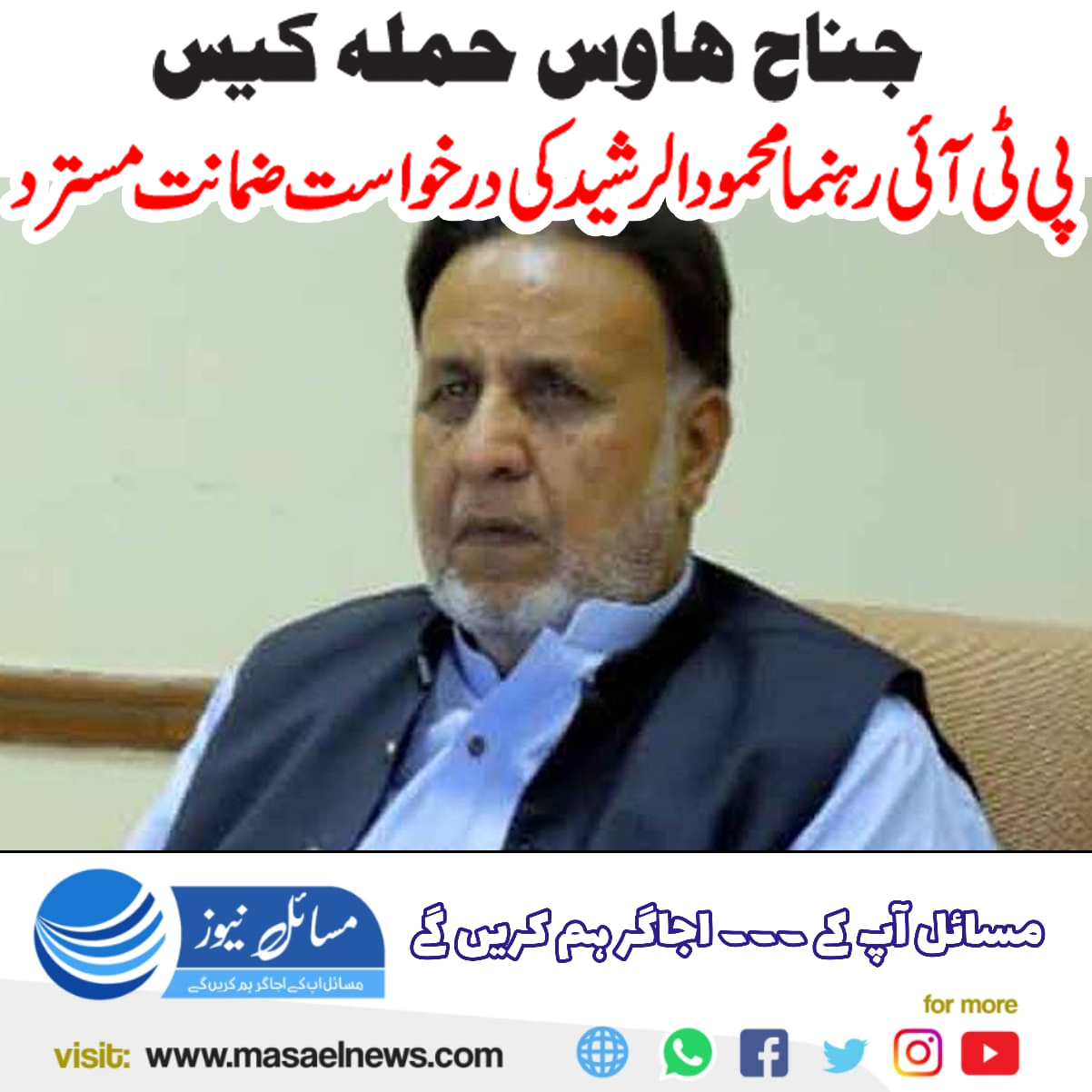 جناح ہاؤس حملہ کیس: پی ٹی آئی رہنما محمود الرشید کی درخواست ضمانت مسترد