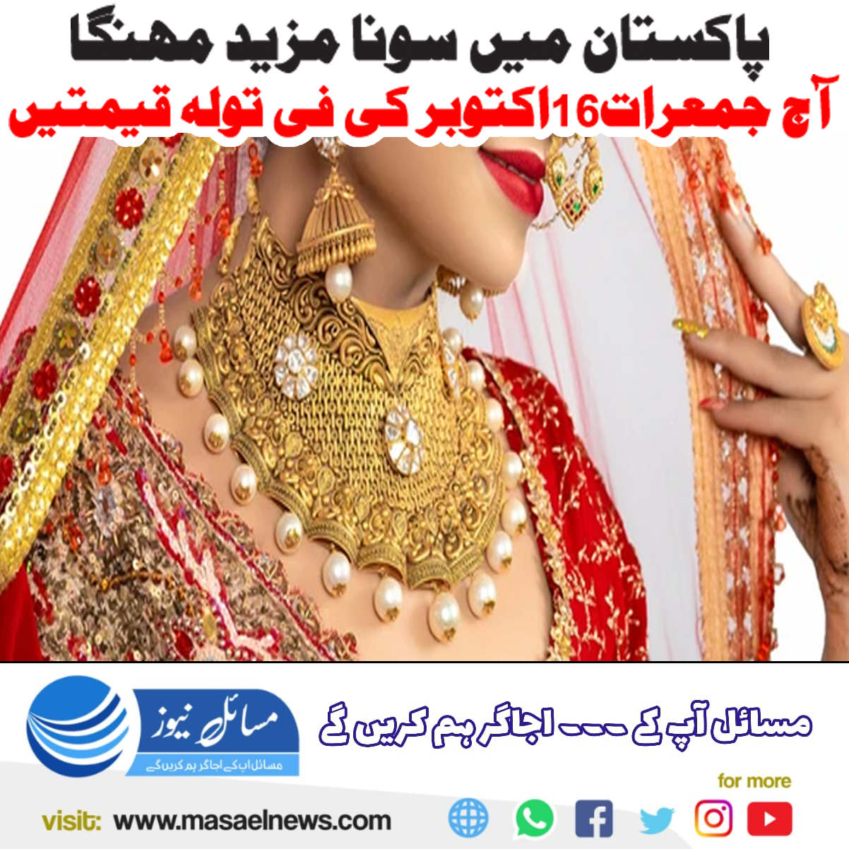 پاکستان میں سونا مزید مہنگا! آج جمعرات 16 اکتوبر کی فی تولہ قیمتیں