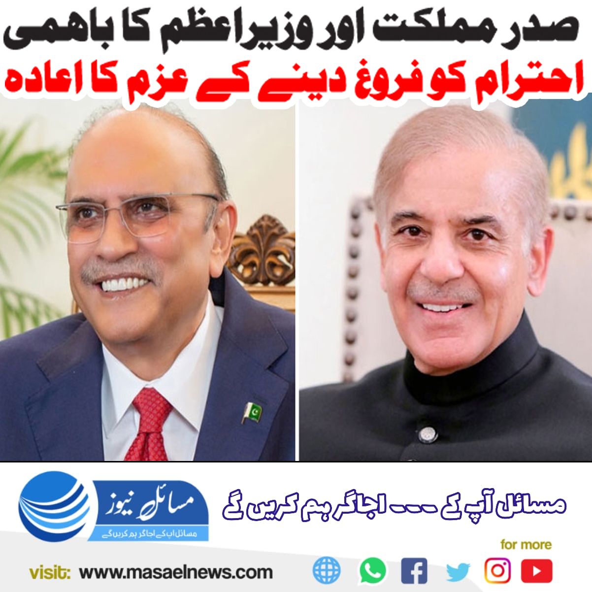 اسلام آباد (مسائل نیوز) صدر مملکت اور وزیراعظم پاکستان نے باہمی احترام کو فروغ دینے کے عزم کا اعادہ کیا ہے۔