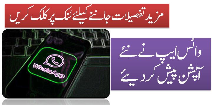 واٹس ایپ نے نئے آپشن پیش کردیئے
