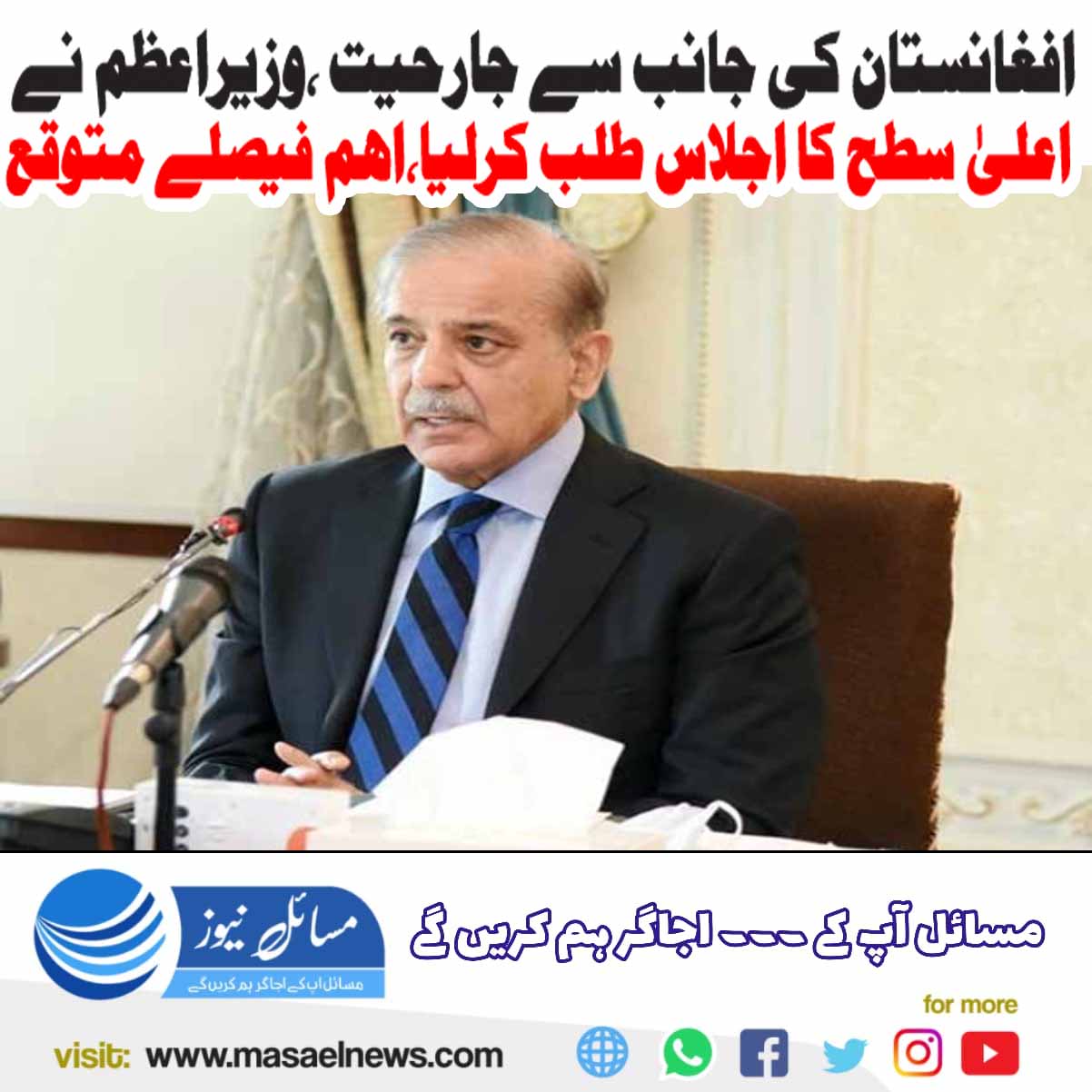 اسلام آباد(مسائل نیوز)مغربی سرحد پر افغان طالبان کی جانب سے جارحیت پر وزیراعظم شہباز شریف نے آج اعلیٰ سطح اجلاس طلب کرلیا جس میں اہم فیصلے متوقع ہیں۔