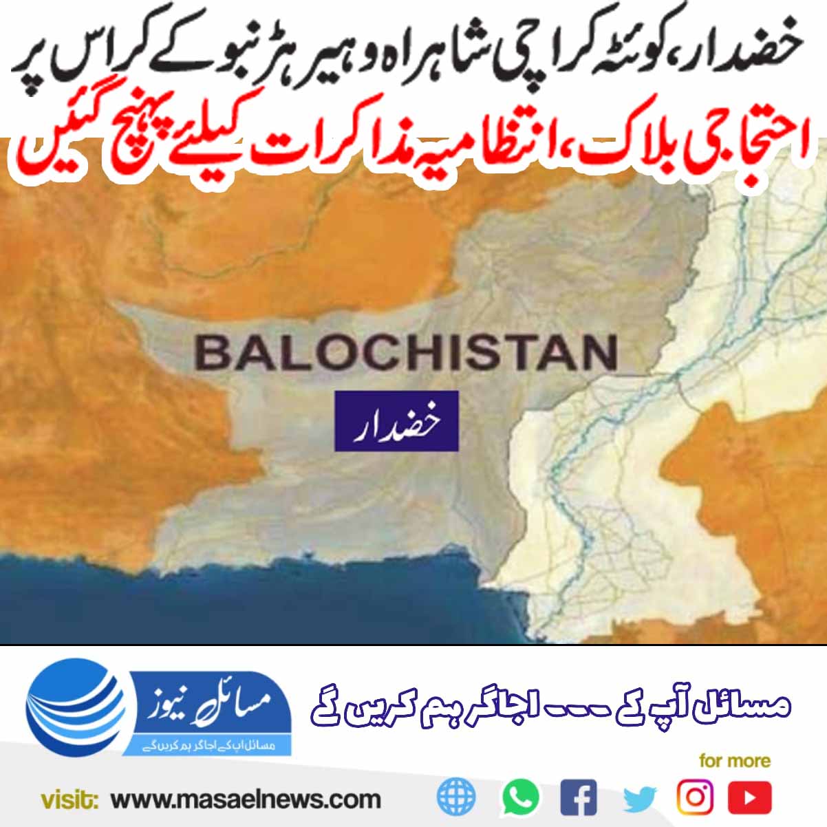خضدار، کوئٹہ کراچی شاہراہ وہیر ہڑنبو کراس پرا حتجاجاً بلاک، انتظامیہ مذاکرات کیلئے پہنچ گئی