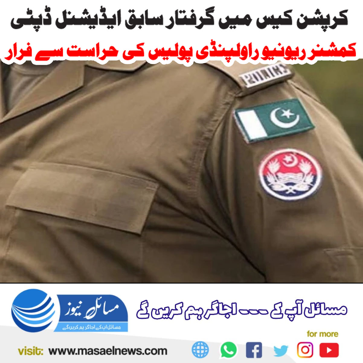 کرپشن کیس میں گرفتار سابق ایڈیشنل ڈپٹی کمشںر ریونیو راولپنڈی پولیس کی حراست سے فرار