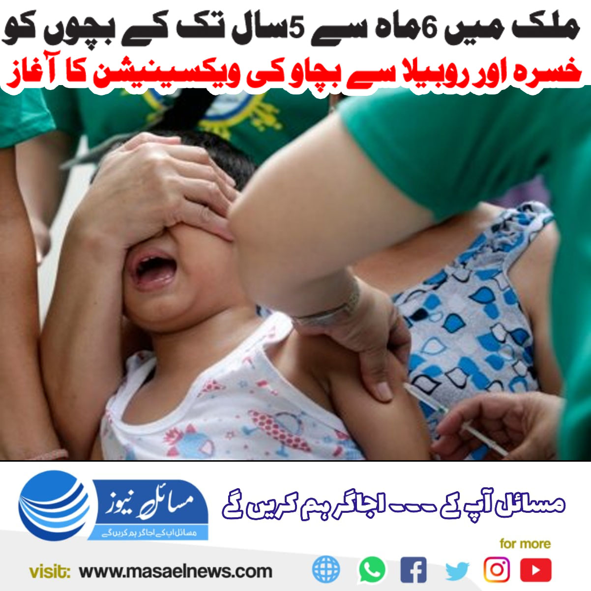 ملک میں6 ماہ سے 5 سال تک کے بچوں کو خسرہ اور روبیلا سے بچائو کی ویکسینیشن کا آغاز ہوگیا