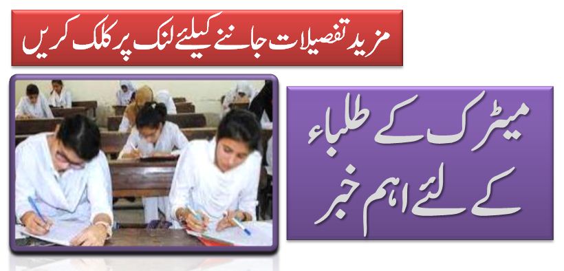 میٹرک کے طلباء کے لئے اہم خبر